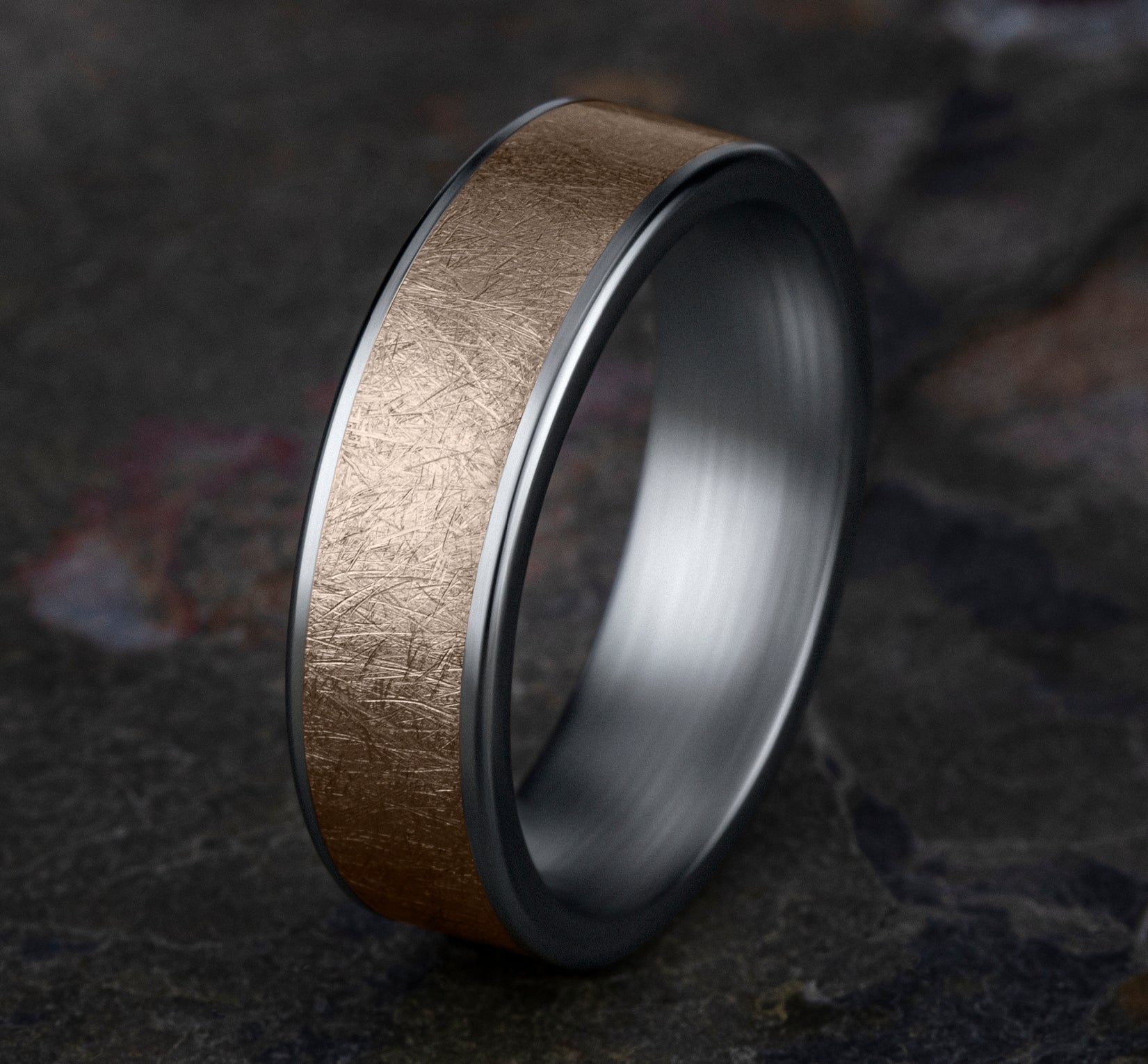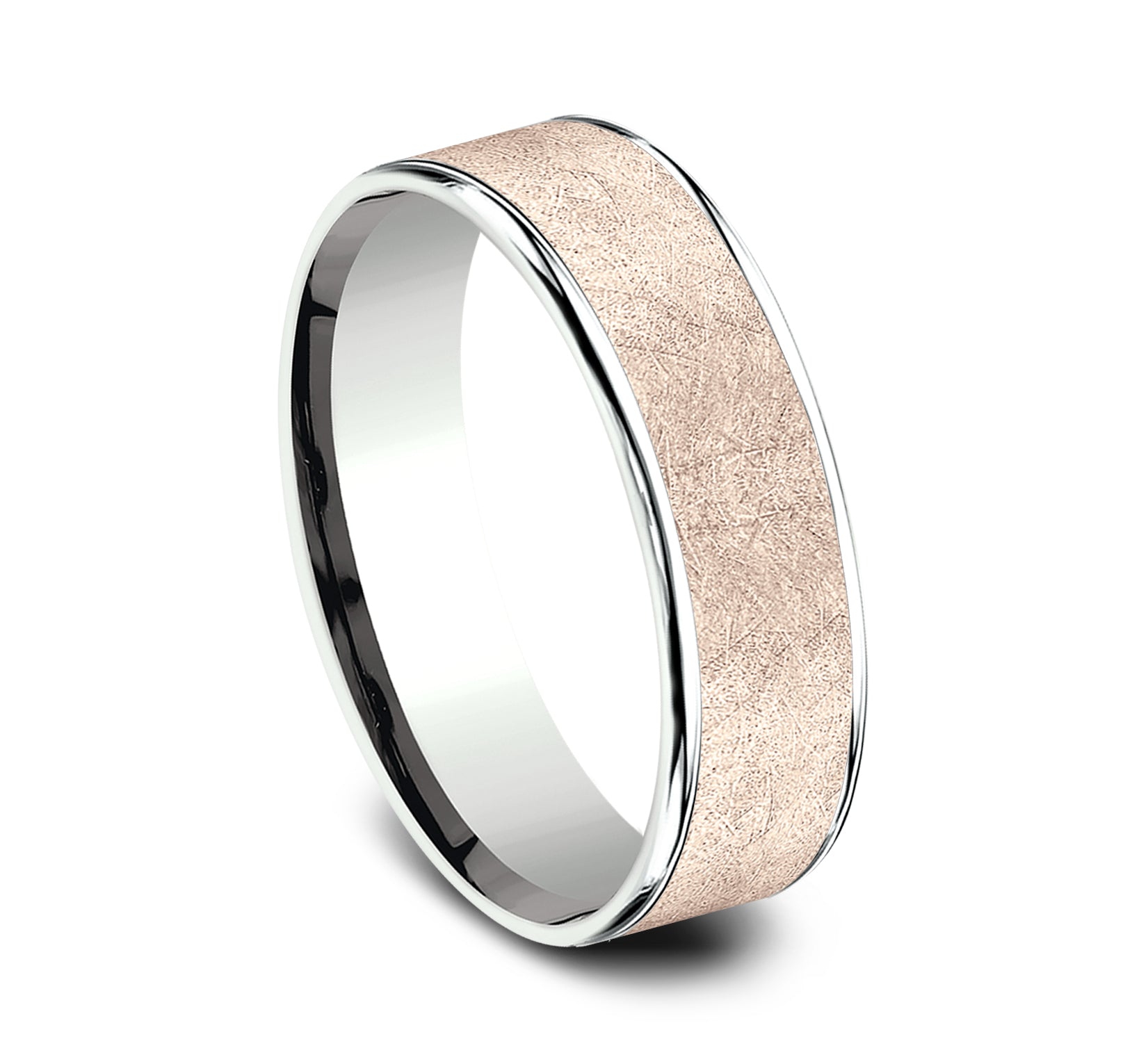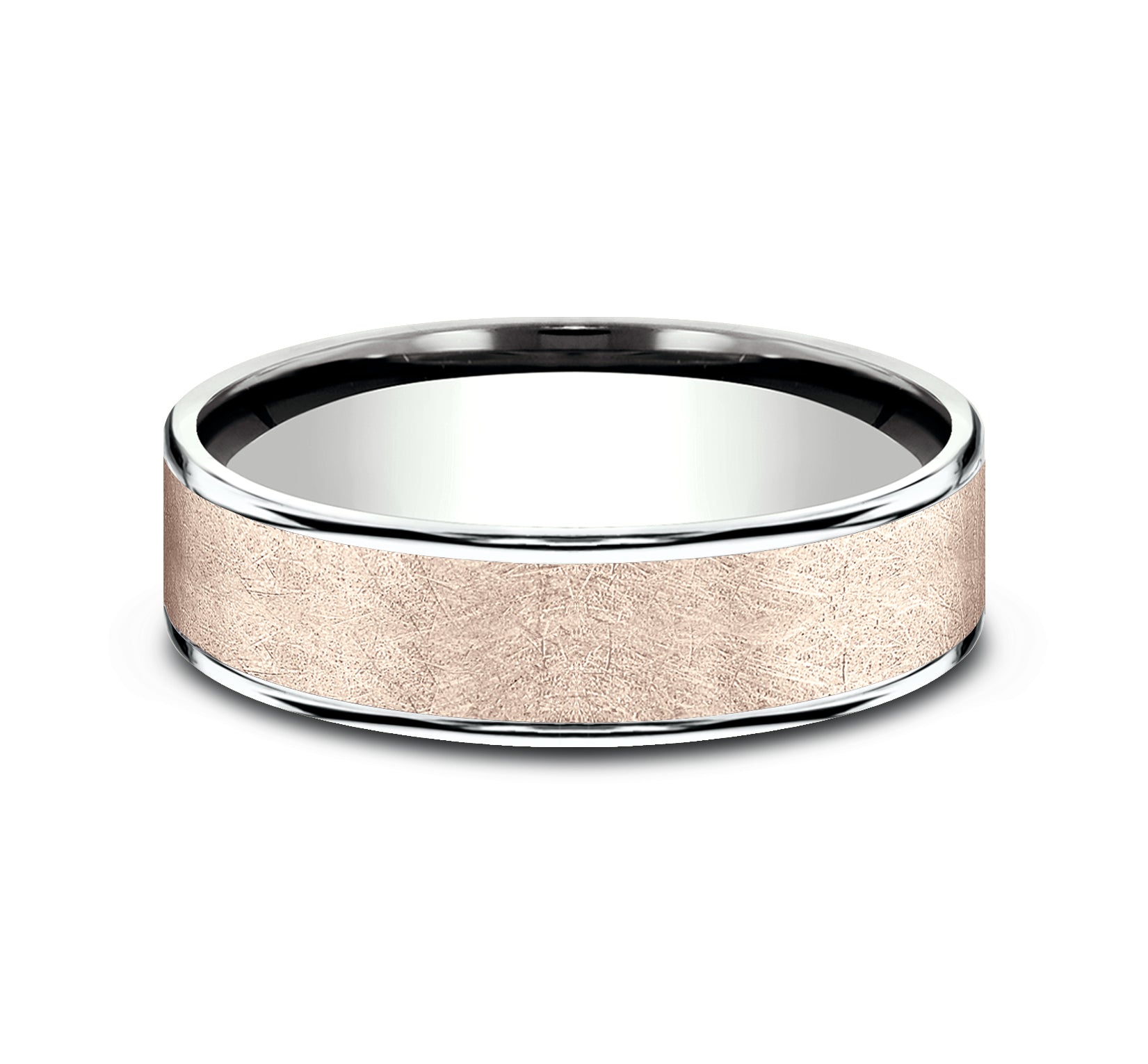 6.5mm, Comfort fit 14K White and Rose Gold Swirl center, thin edges