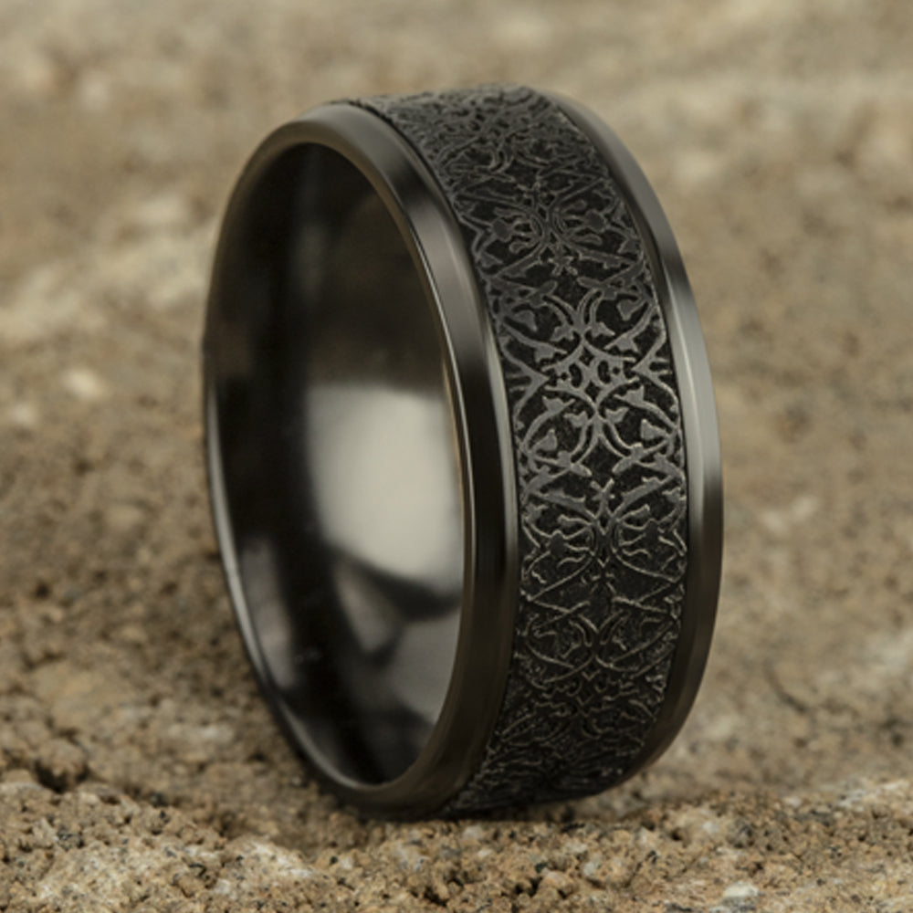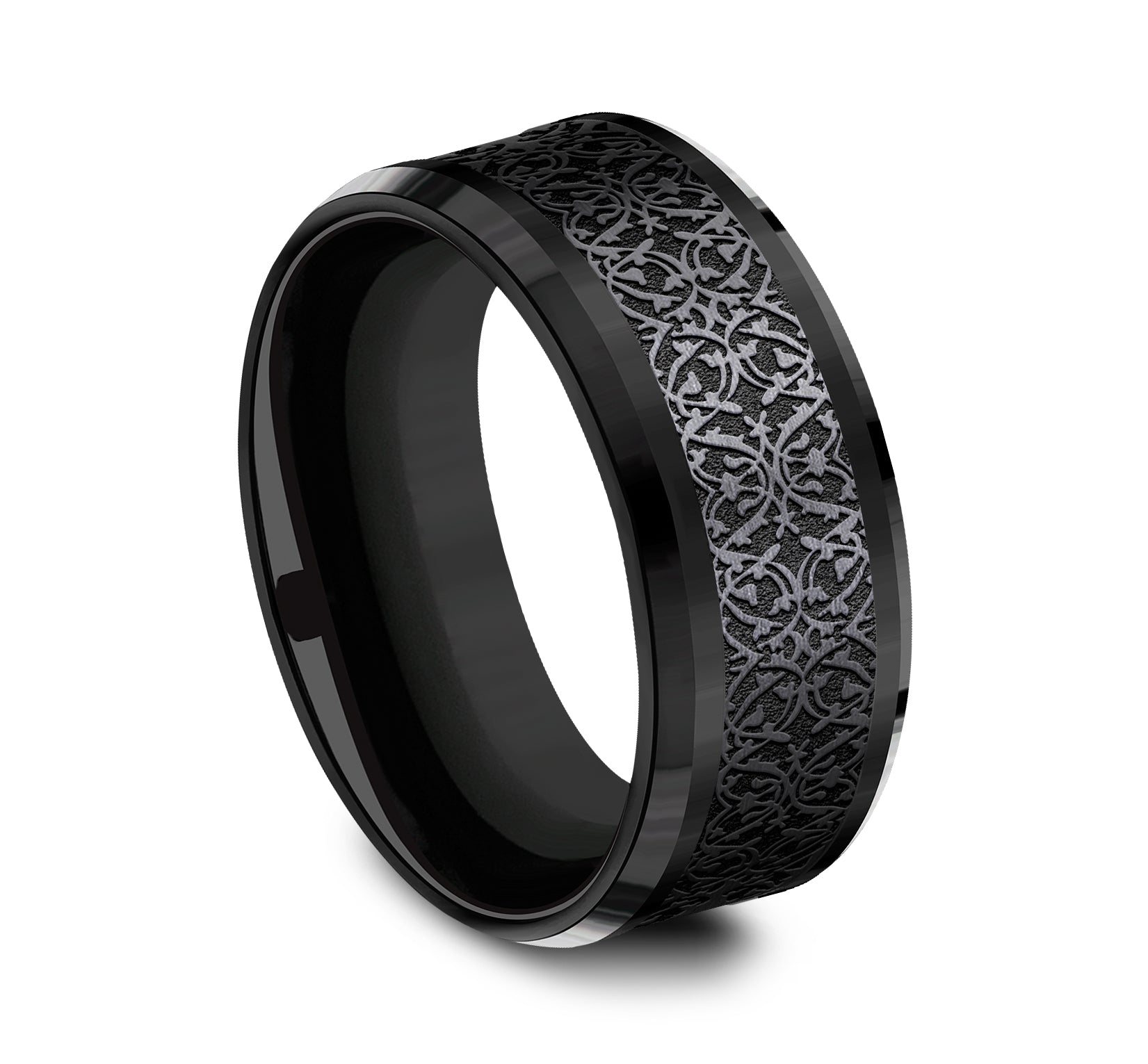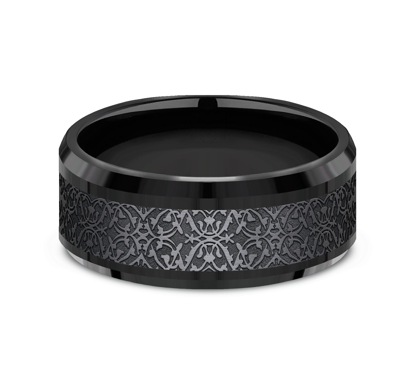 9mm, Comfort fit Black Titanium Ottoman pattern, polished drop bevel edges
