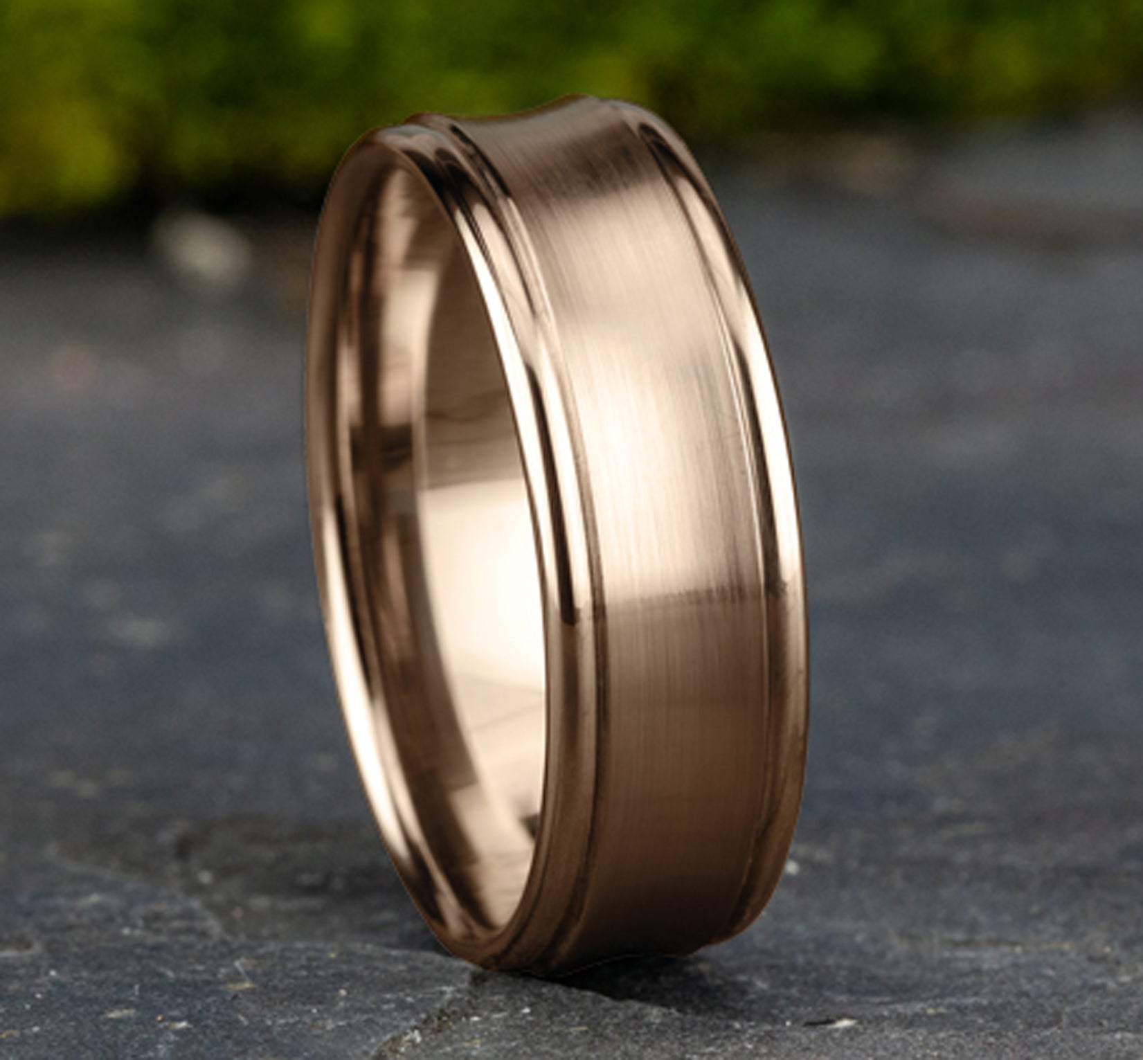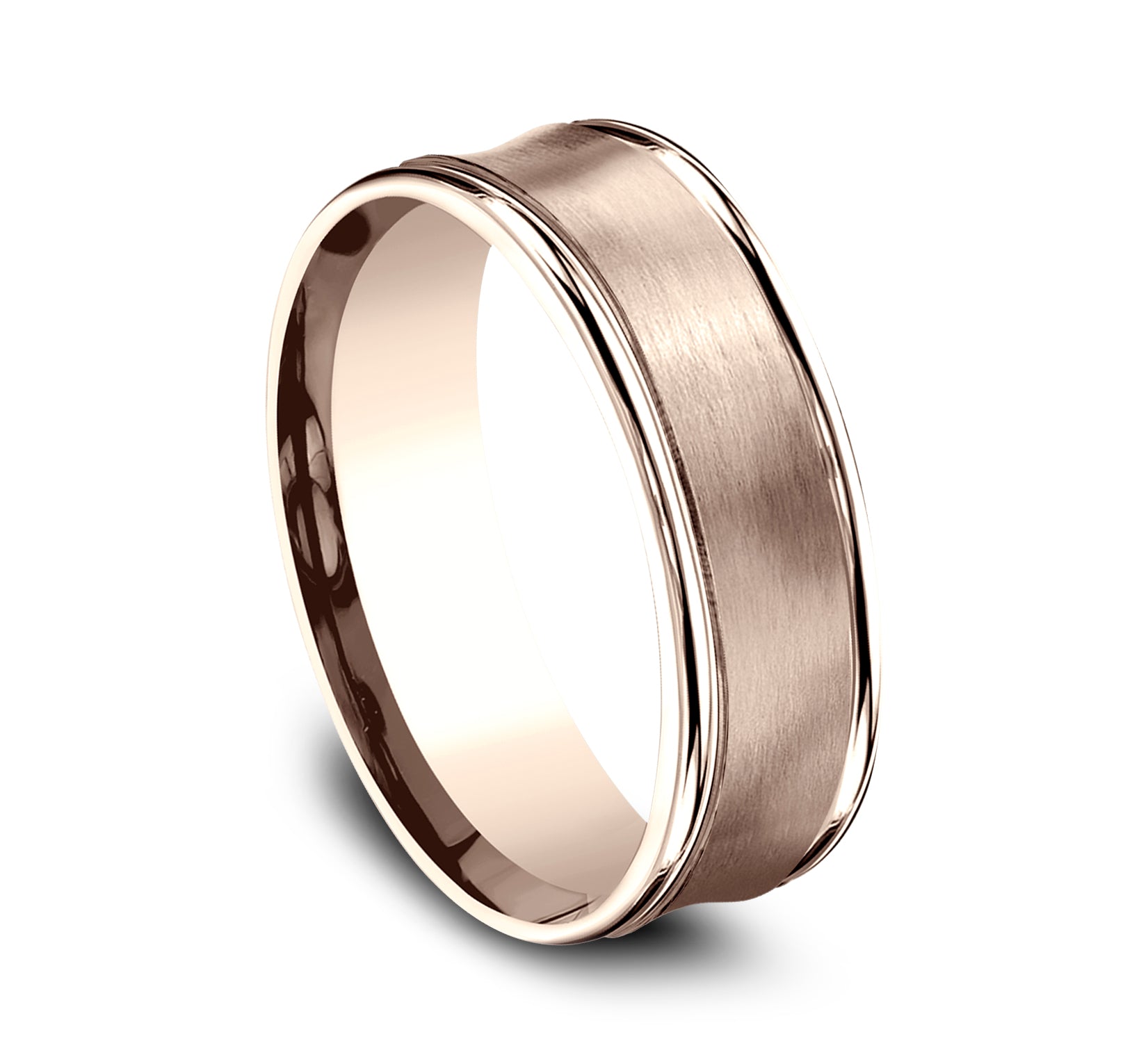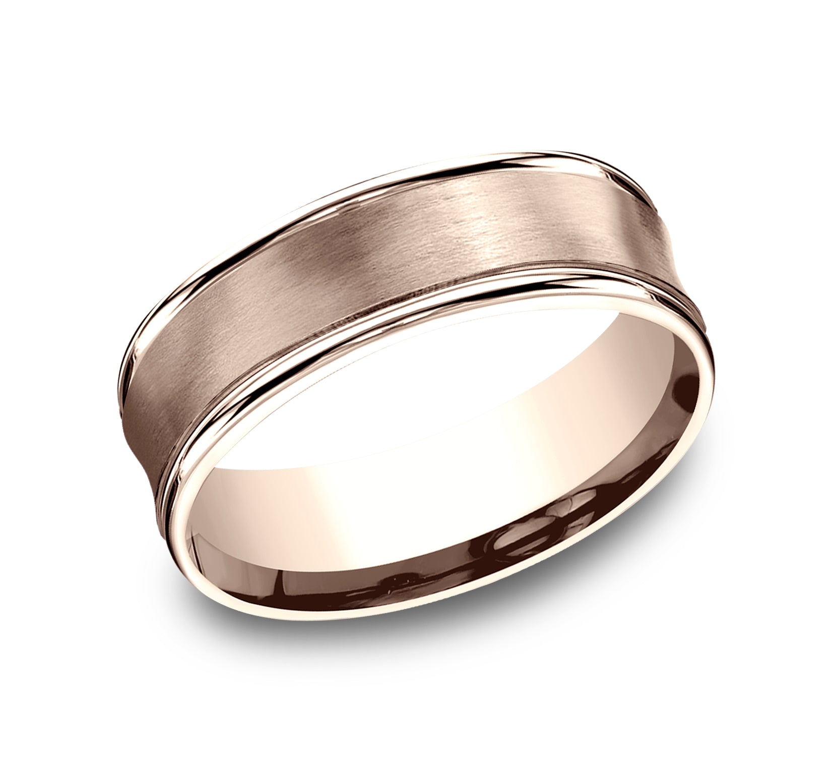 7.5mm, Comfort fit 14K Rose Gold Satin finished concave center, polished round edges