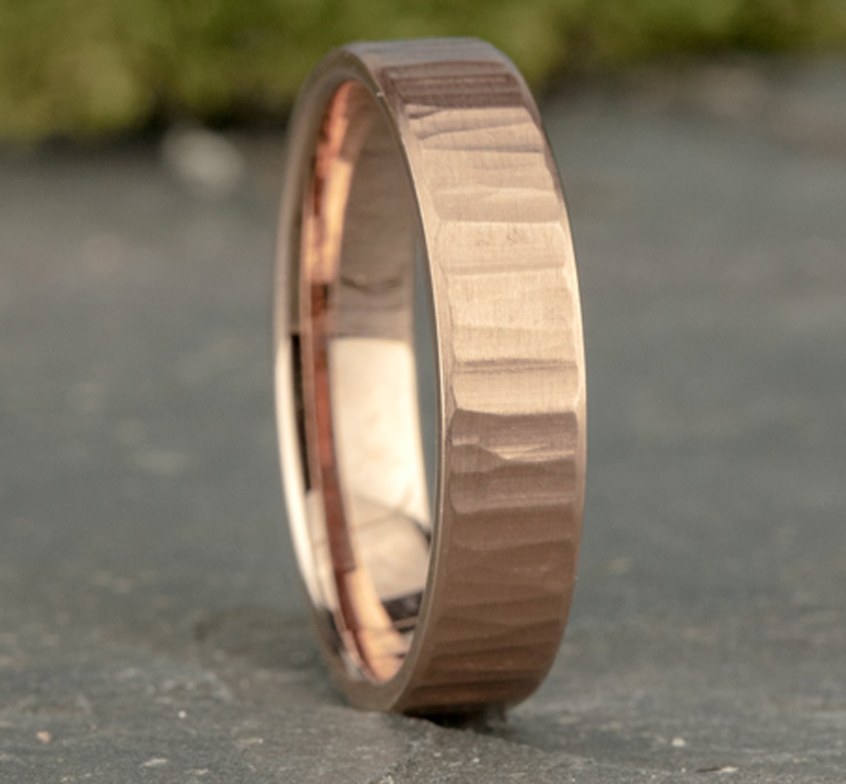 5mm, Comfort fit 14K Rose Gold Vertical hammered finish