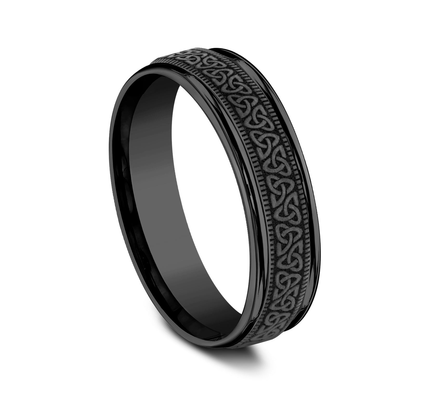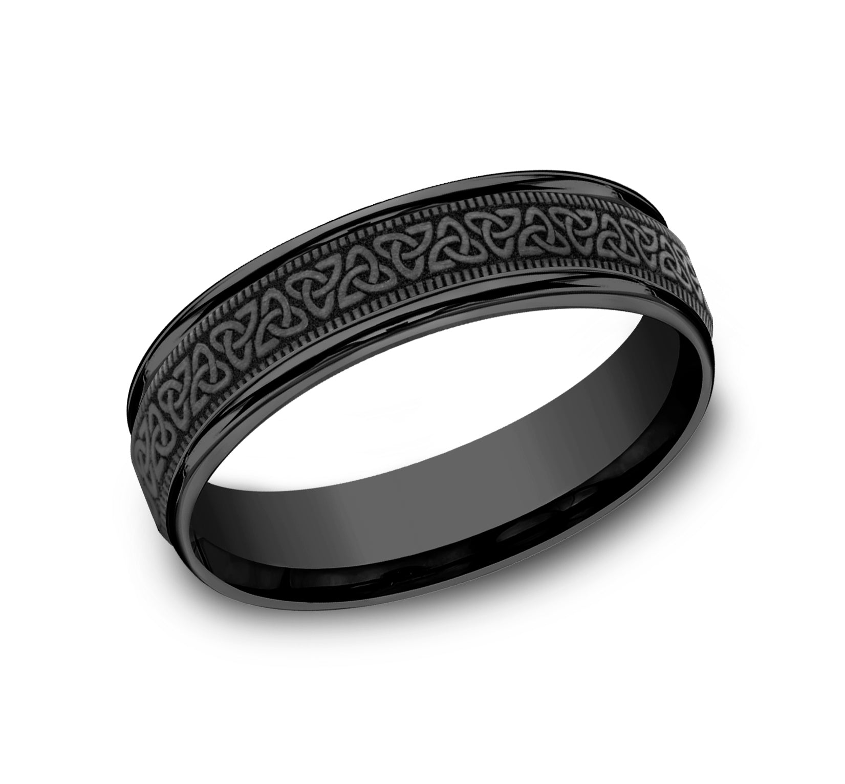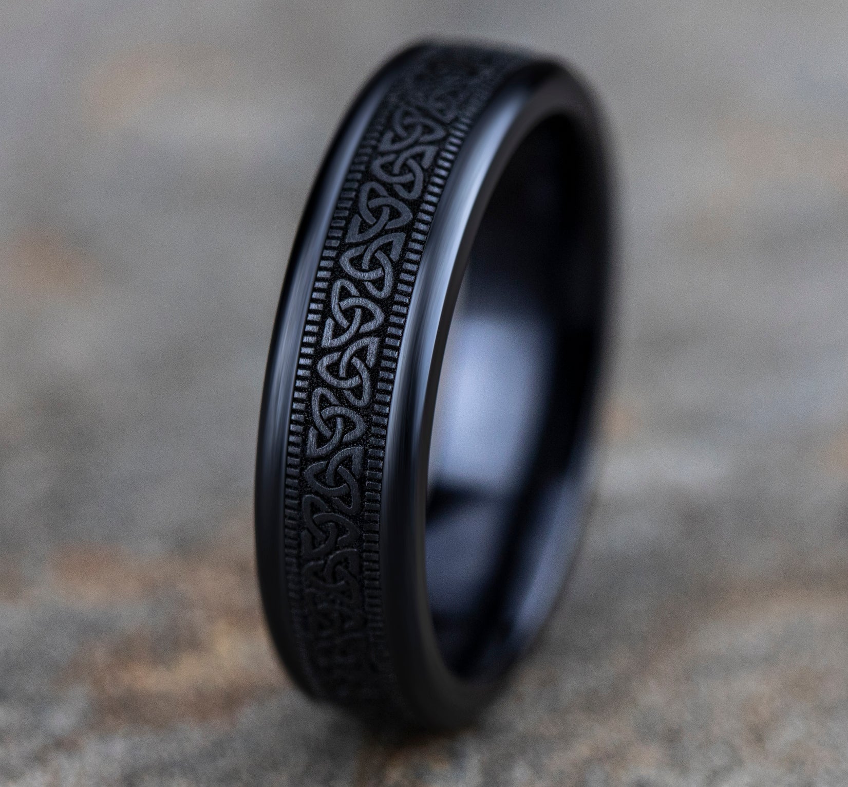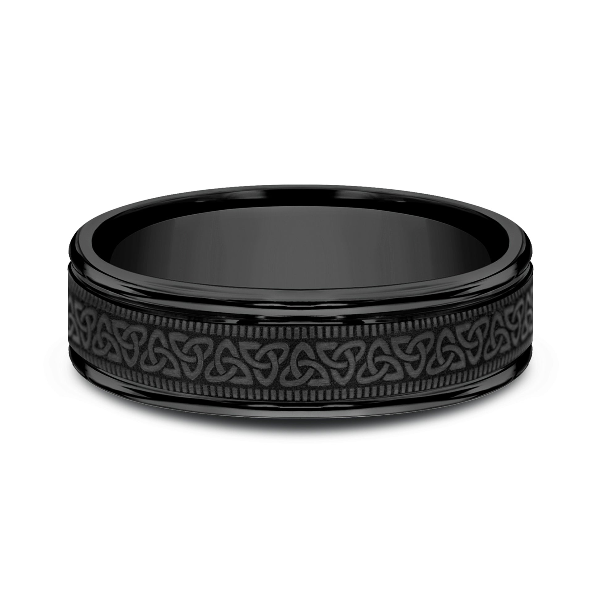 6mm, Comfort fit Black Titanium Celtic knot pattern, milgrain detailing, polished round edges