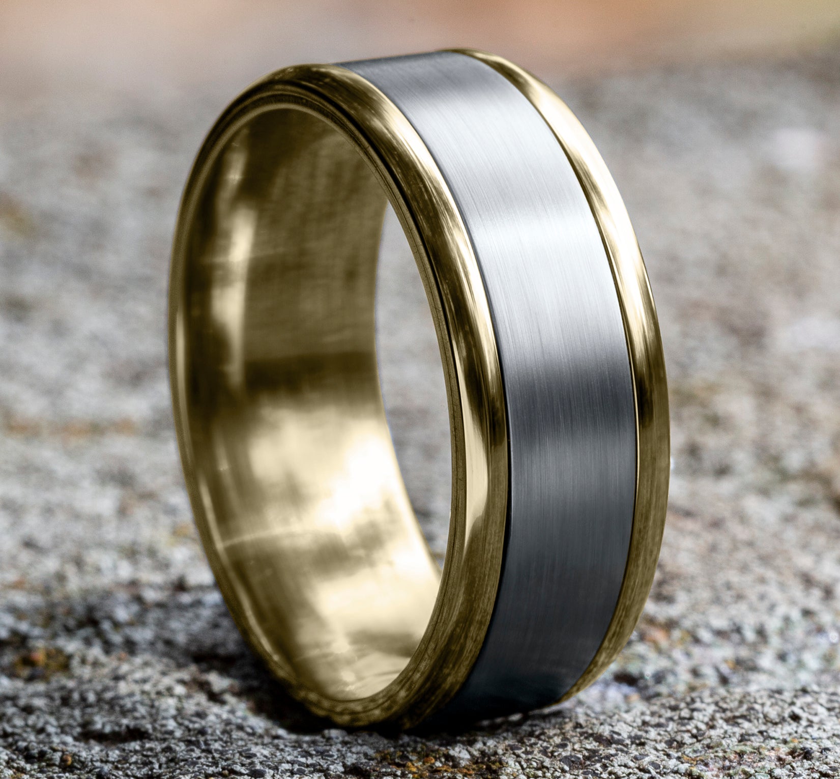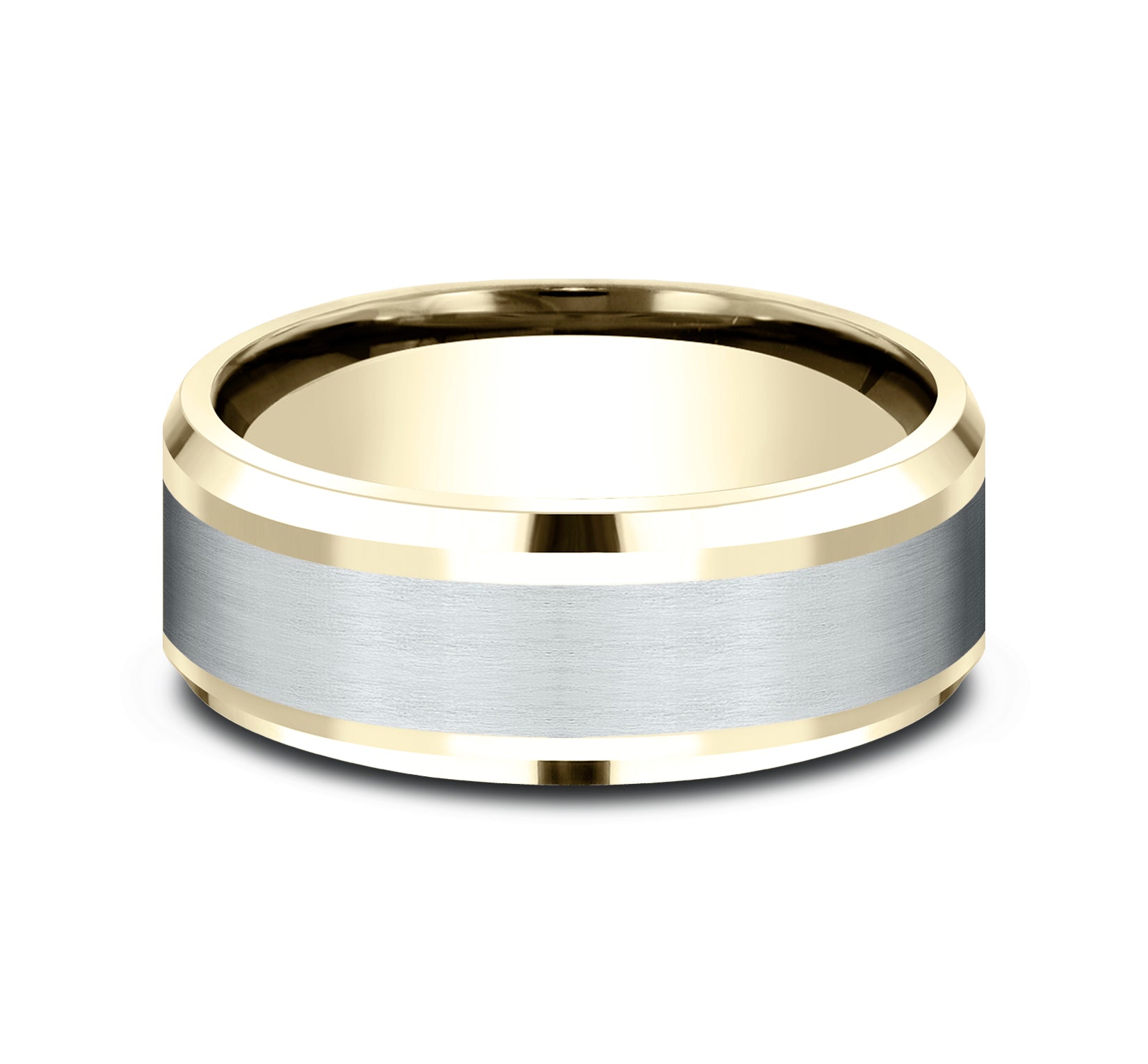 8mm, Comfort fit 14K Yellow and White Gold Satin center, polished bevel edges