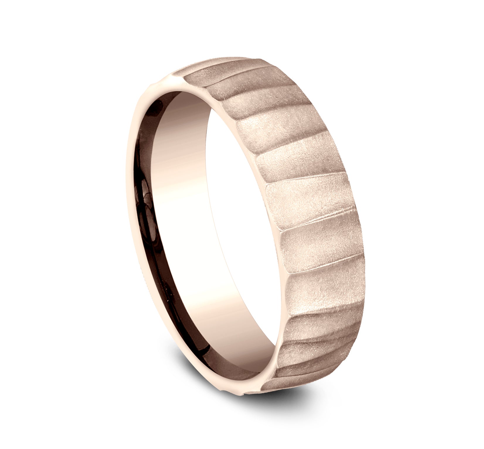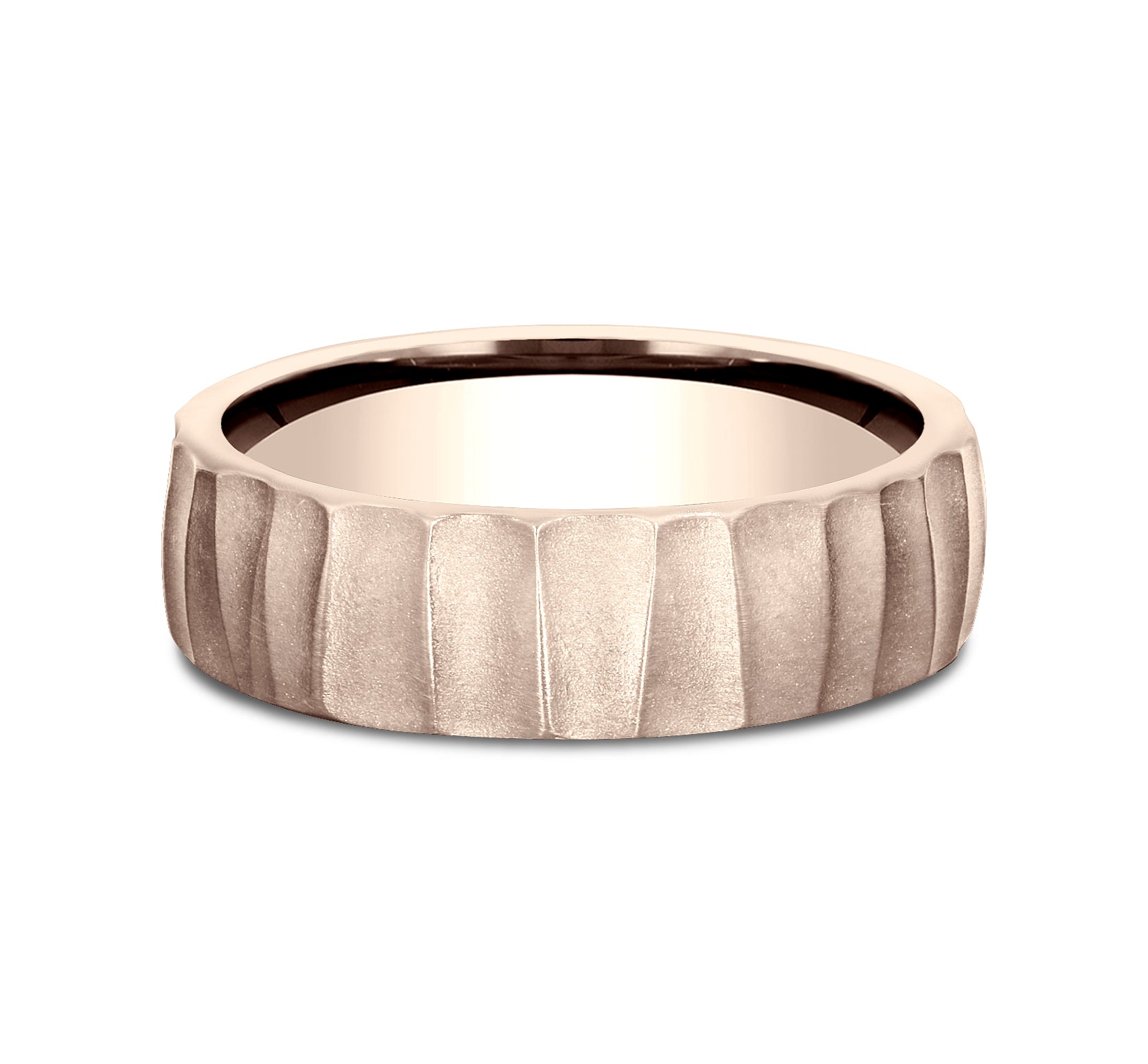 6.5mm, Comfort fit 14K Rose Gold Vertical barrel cuts