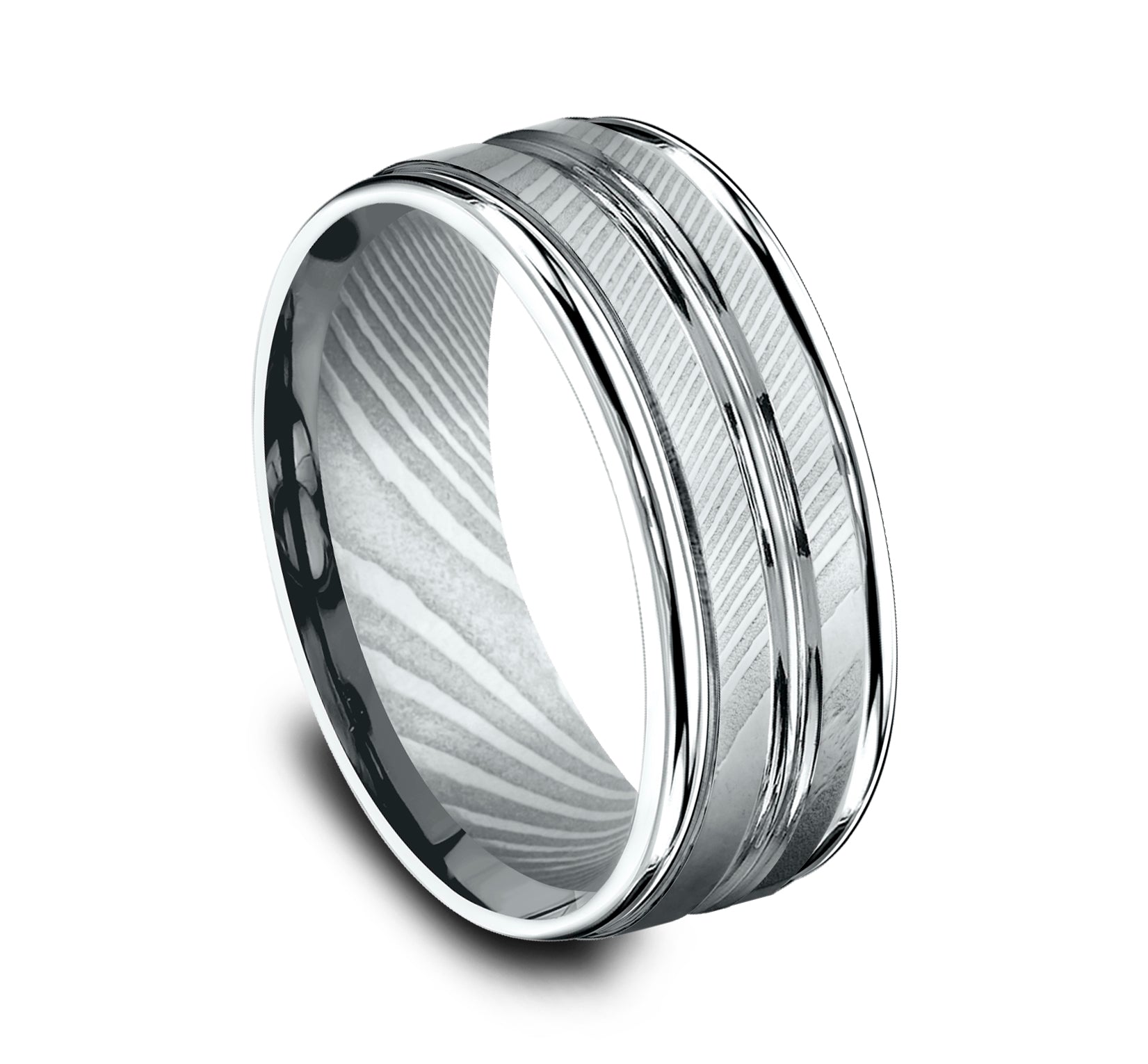 8mm, Comfort fit Damascus Steel Polished double center cuts and round edges