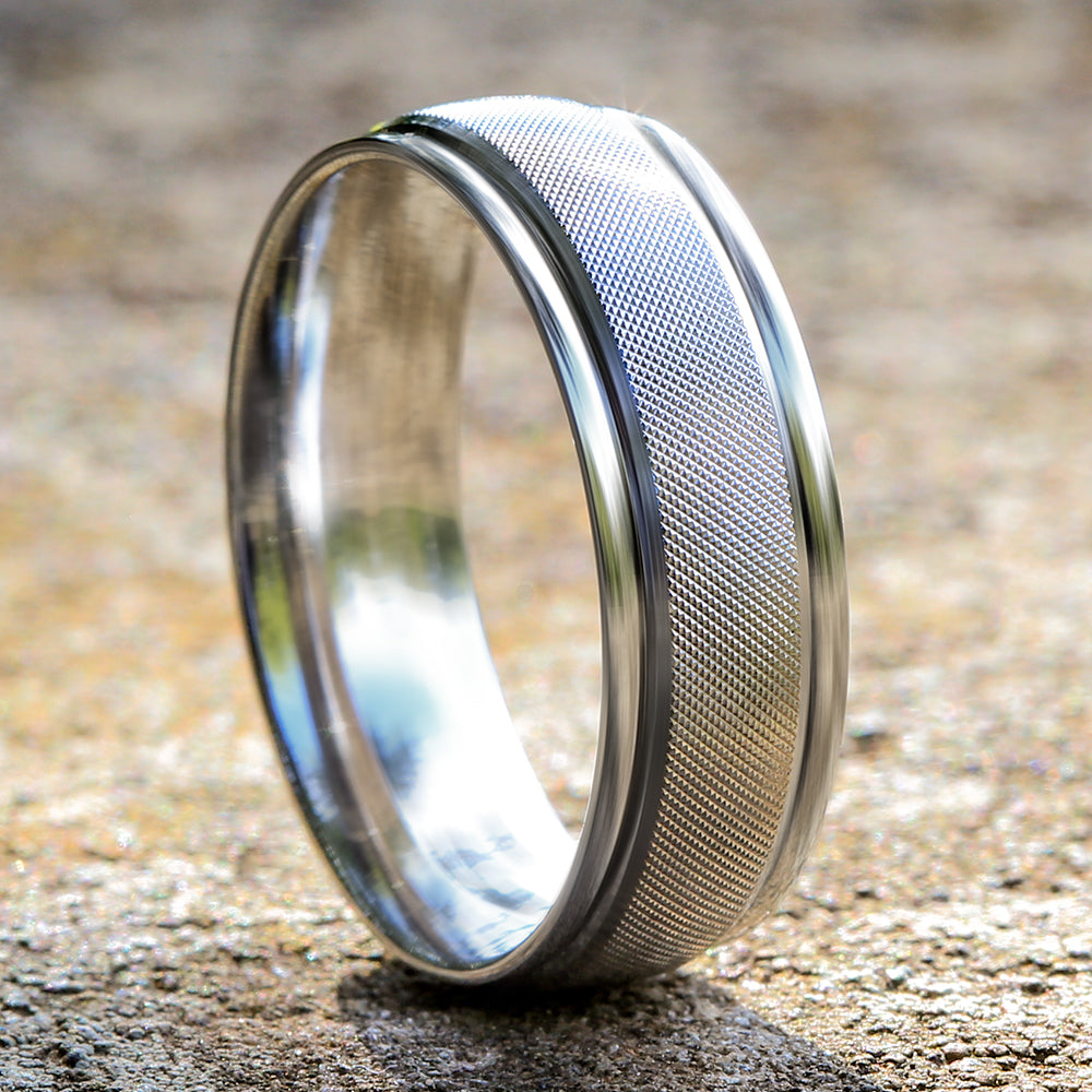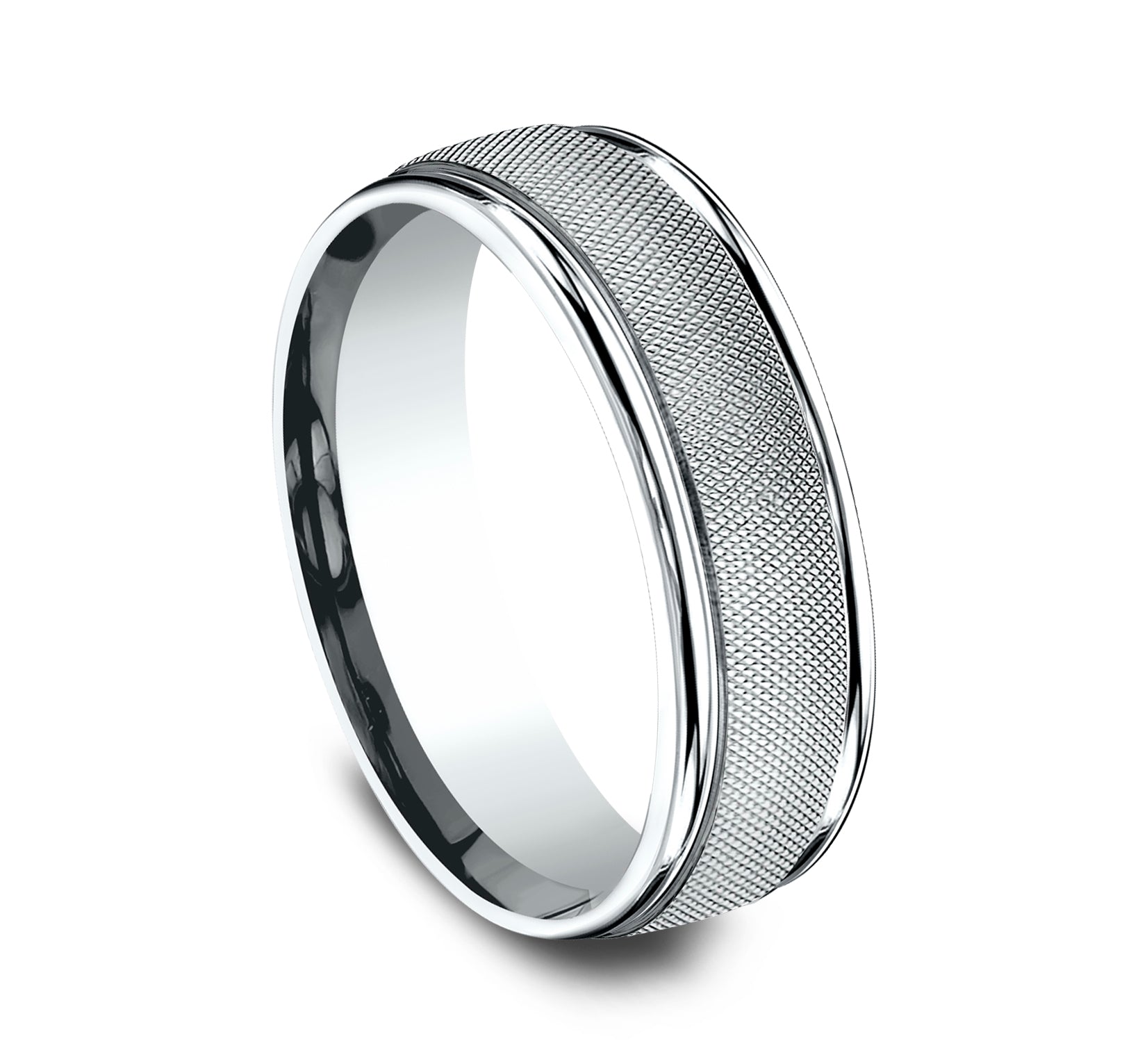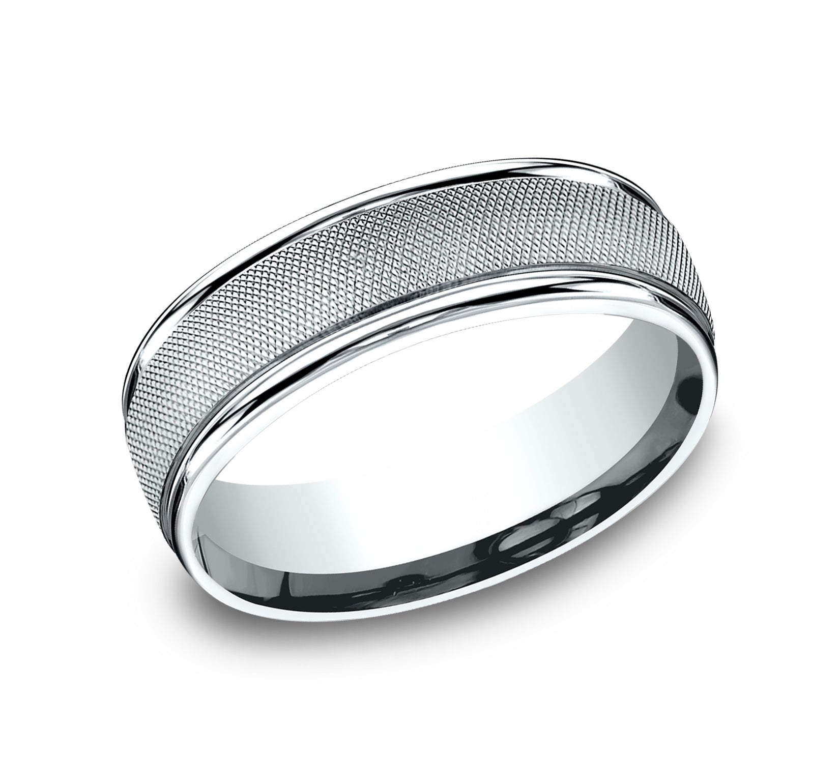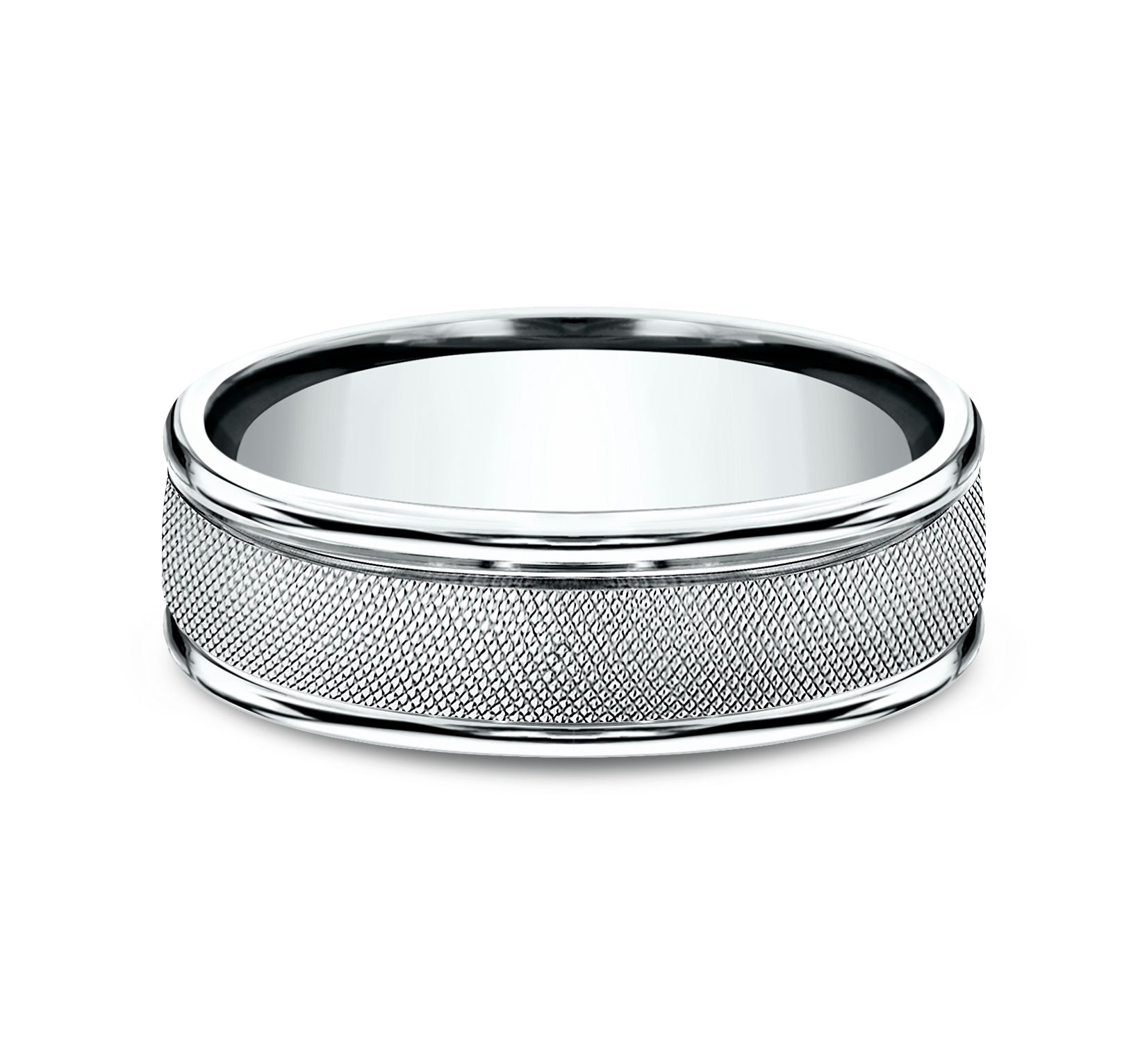 7mm, Comfort fit 14K White Gold Florentine finished center, polished round edges