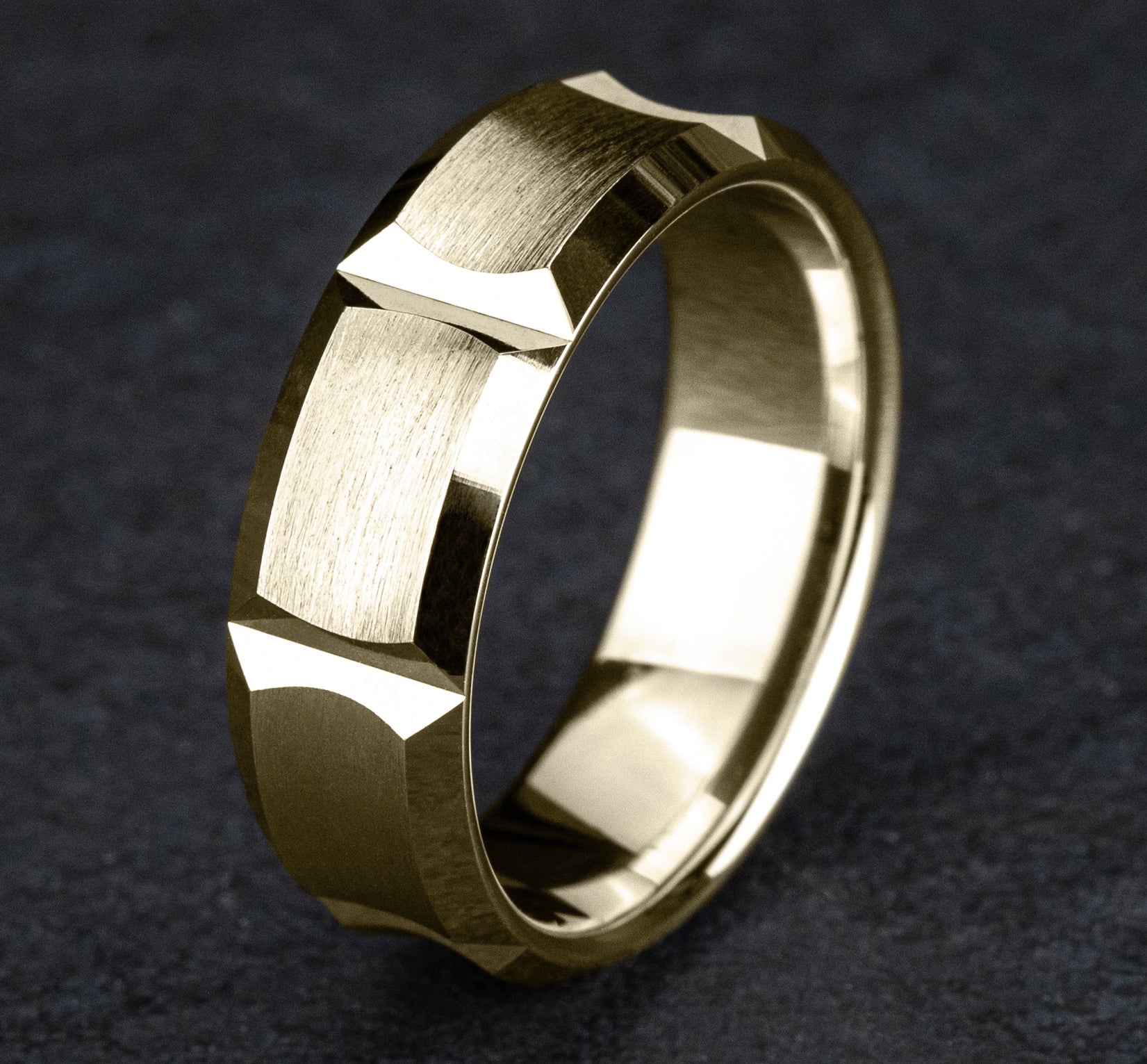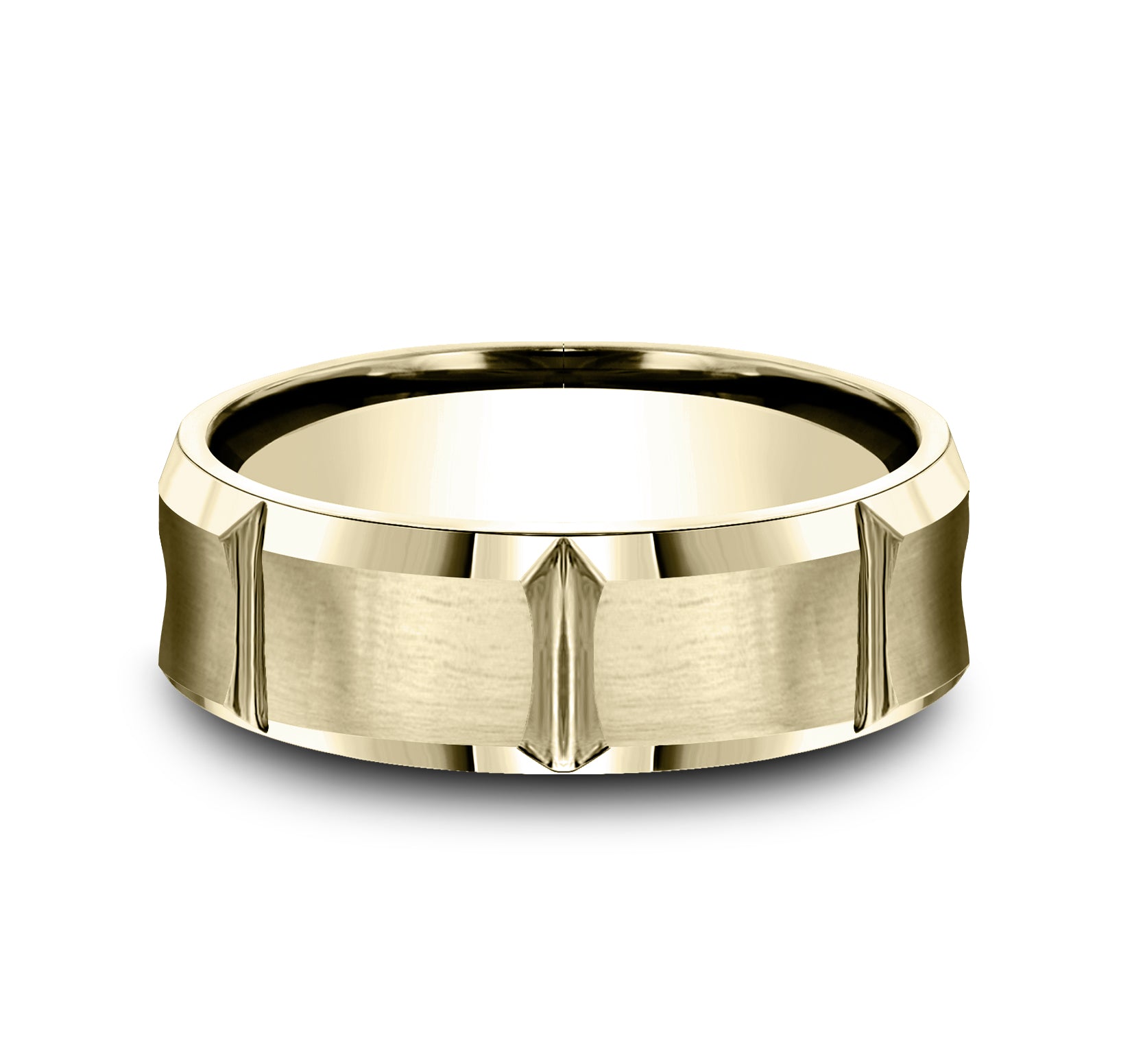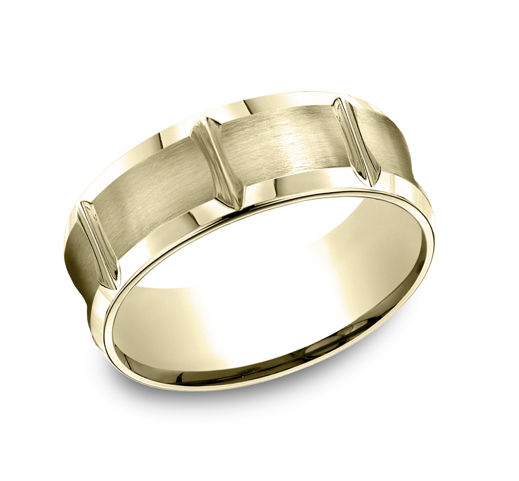 7.5mm, Comfort fit 14K Yellow Gold Satin finish with deep segmented cuts