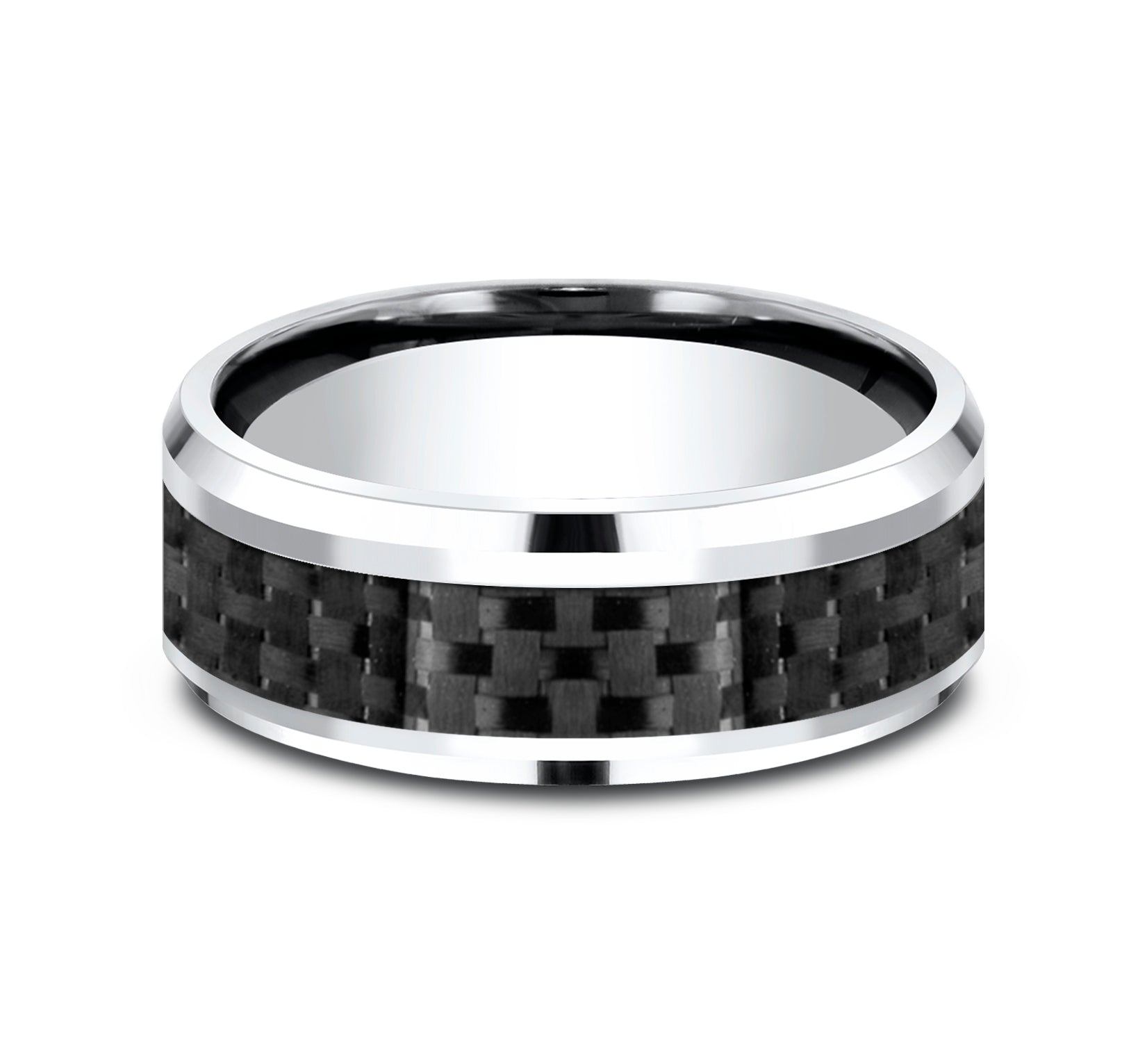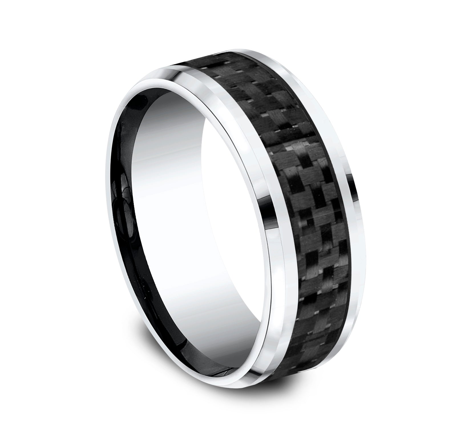8mm, Comfort fit White Cobalt and Black Carbon Fiber Carbon Fiber center, polished bevel edges