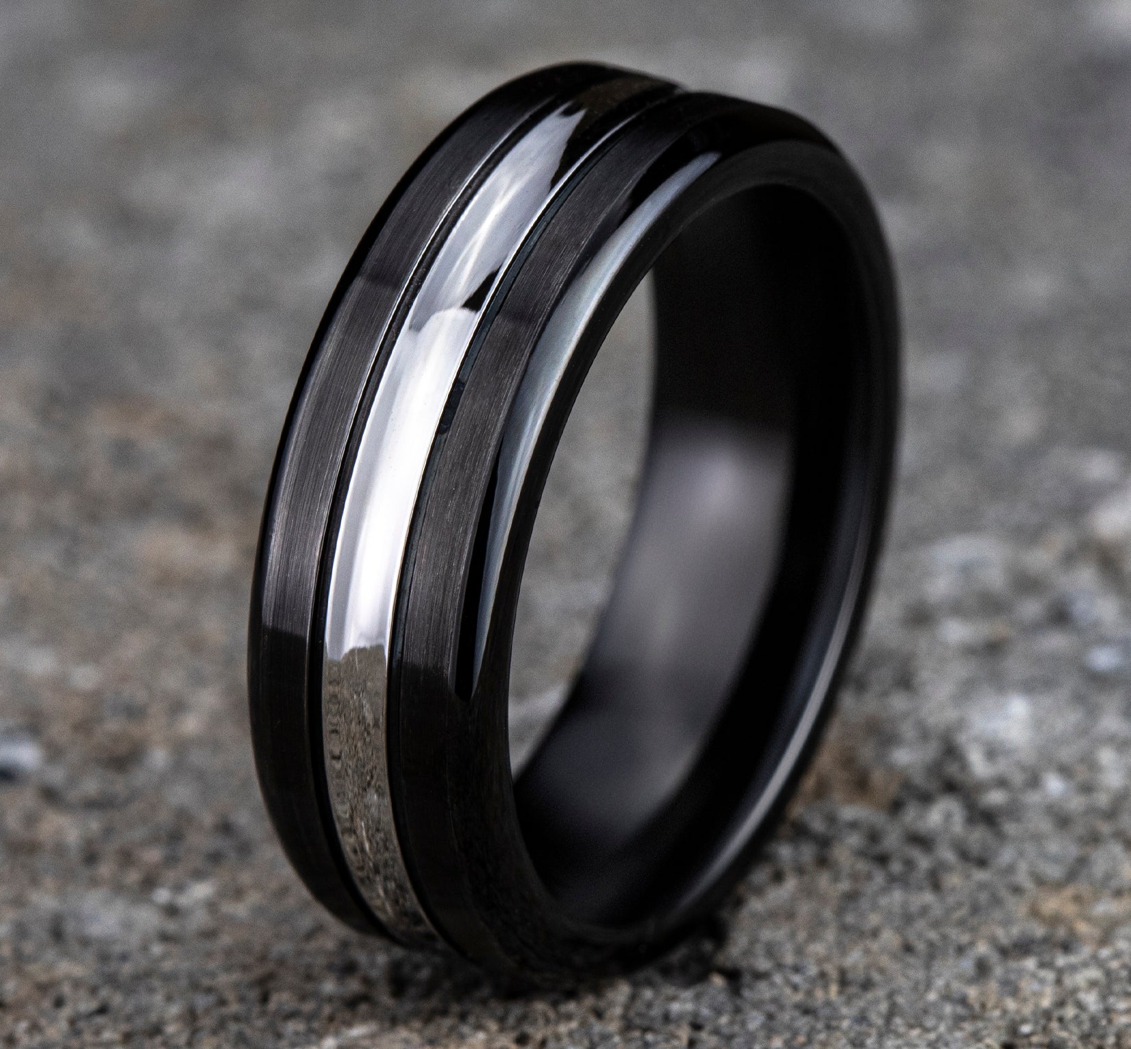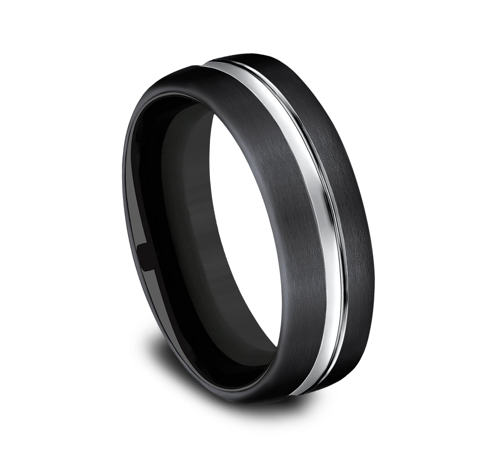 7.5mm, Comfort fit Black Cobalt Satin finish, polished concave center cut