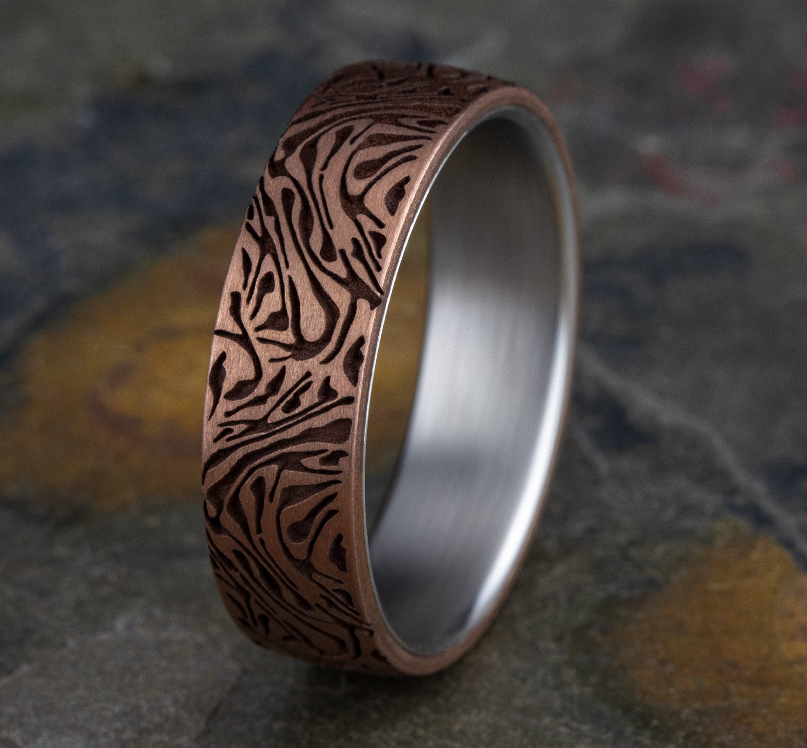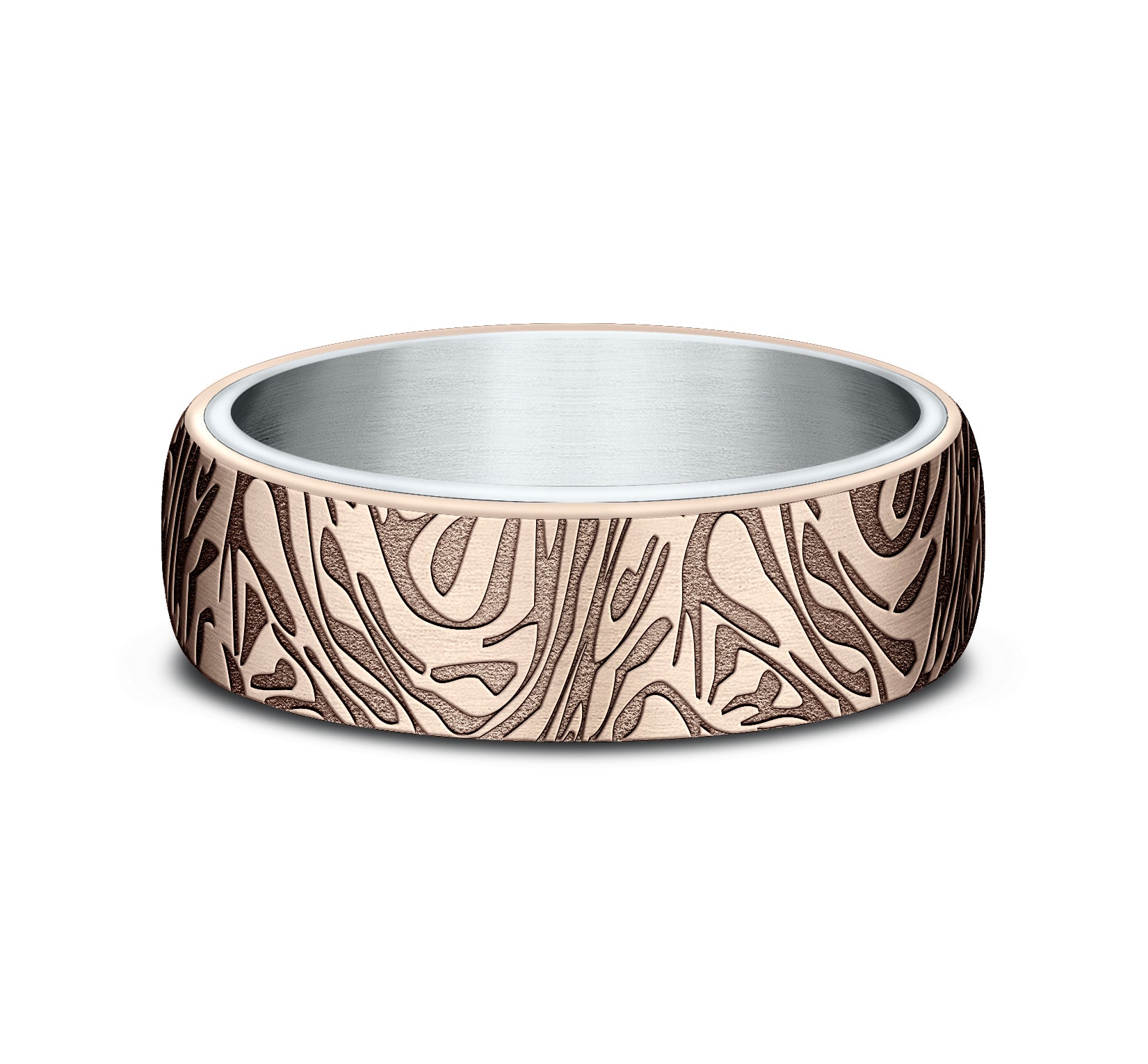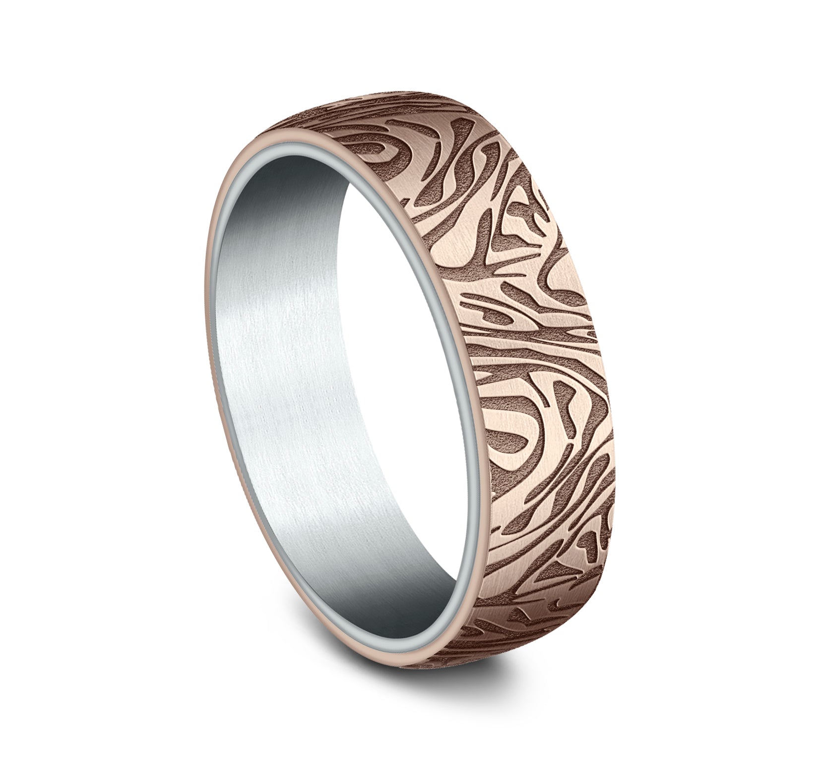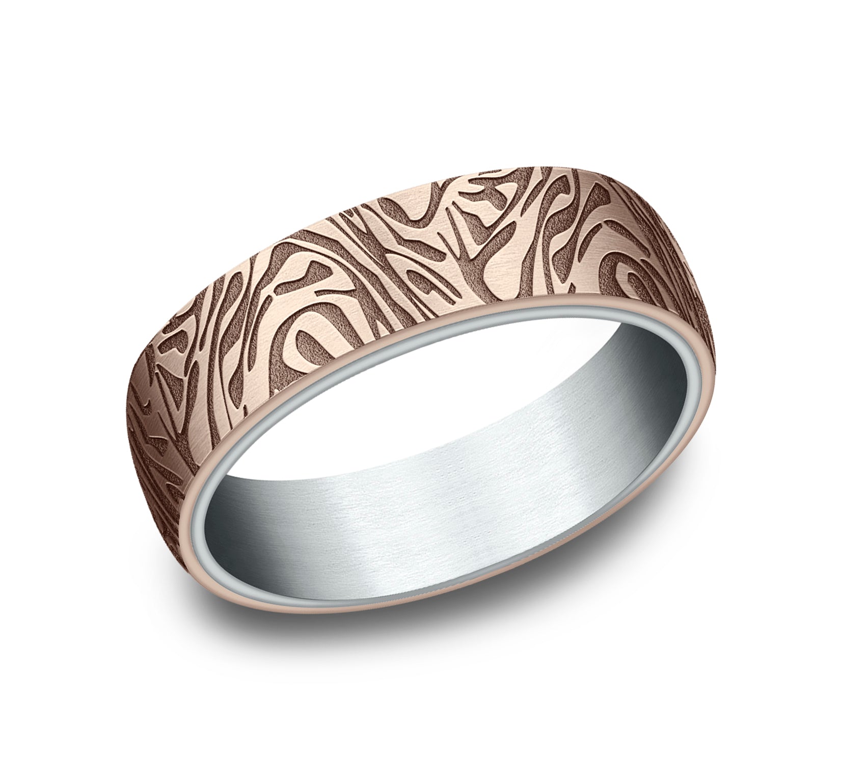 6.5mm, Comfort fit 14K White and Rose Gold Faux mokume pattern