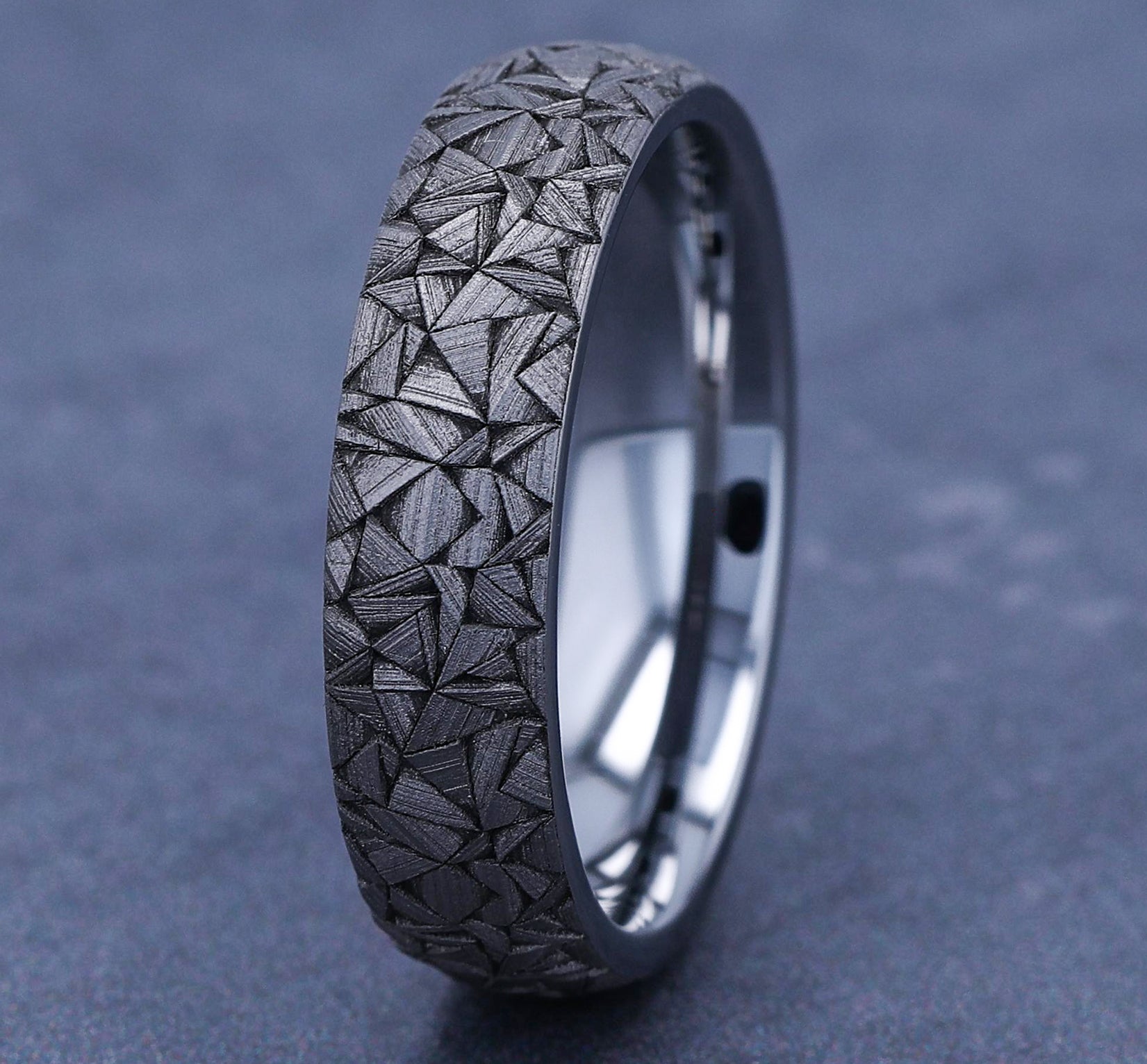 6mm, Comfort fit Tungsten Kaleidoscope pattern