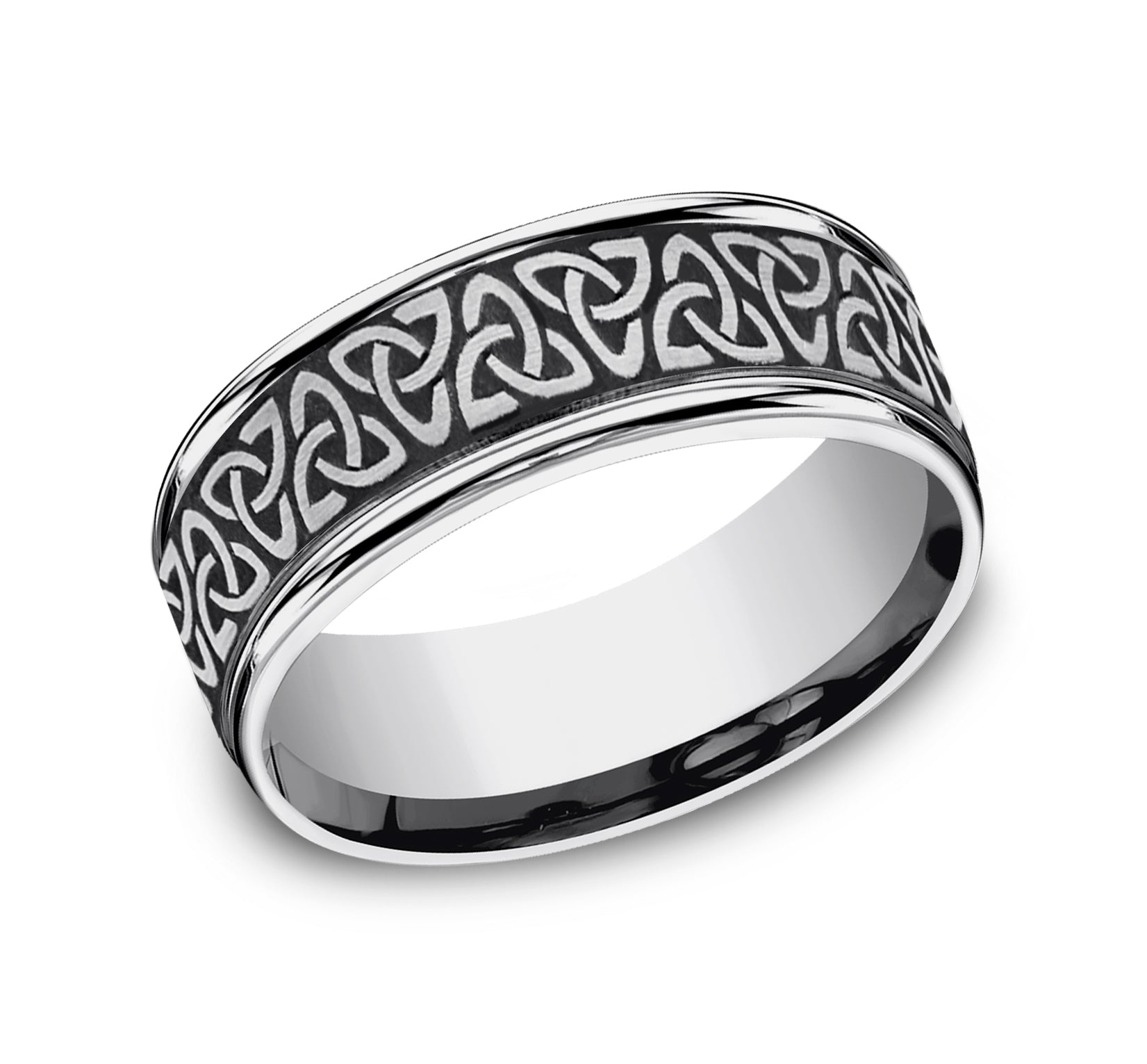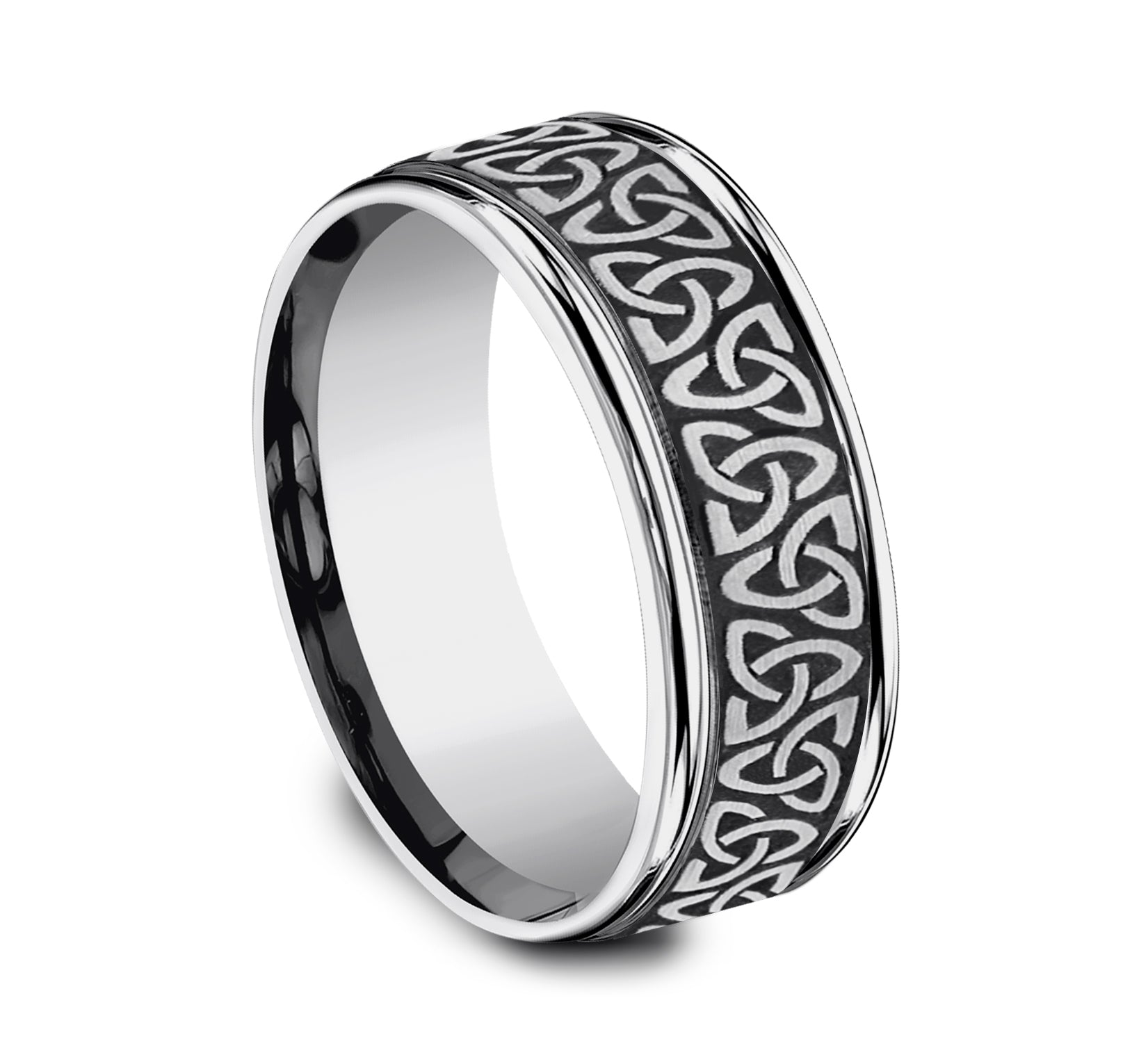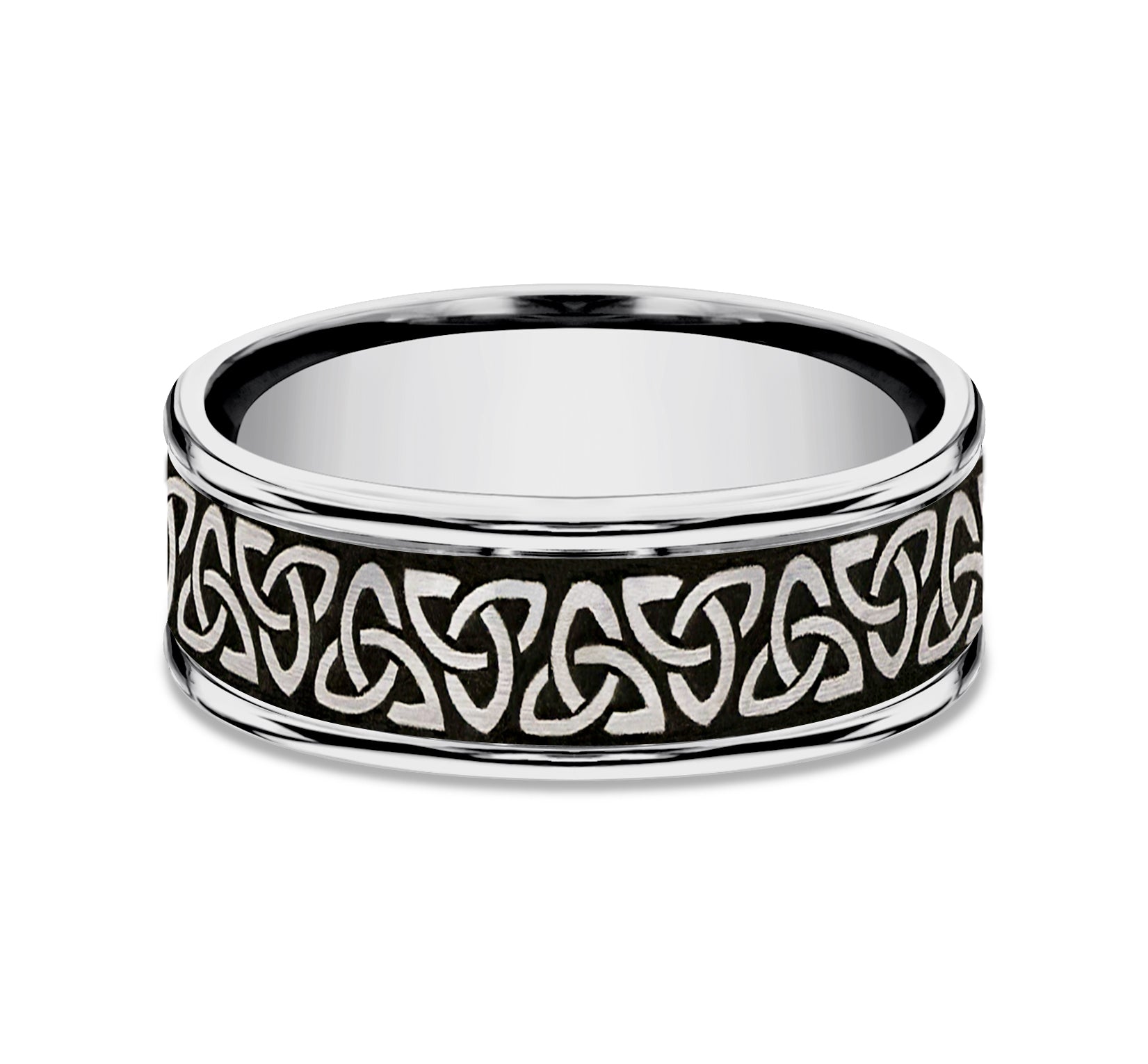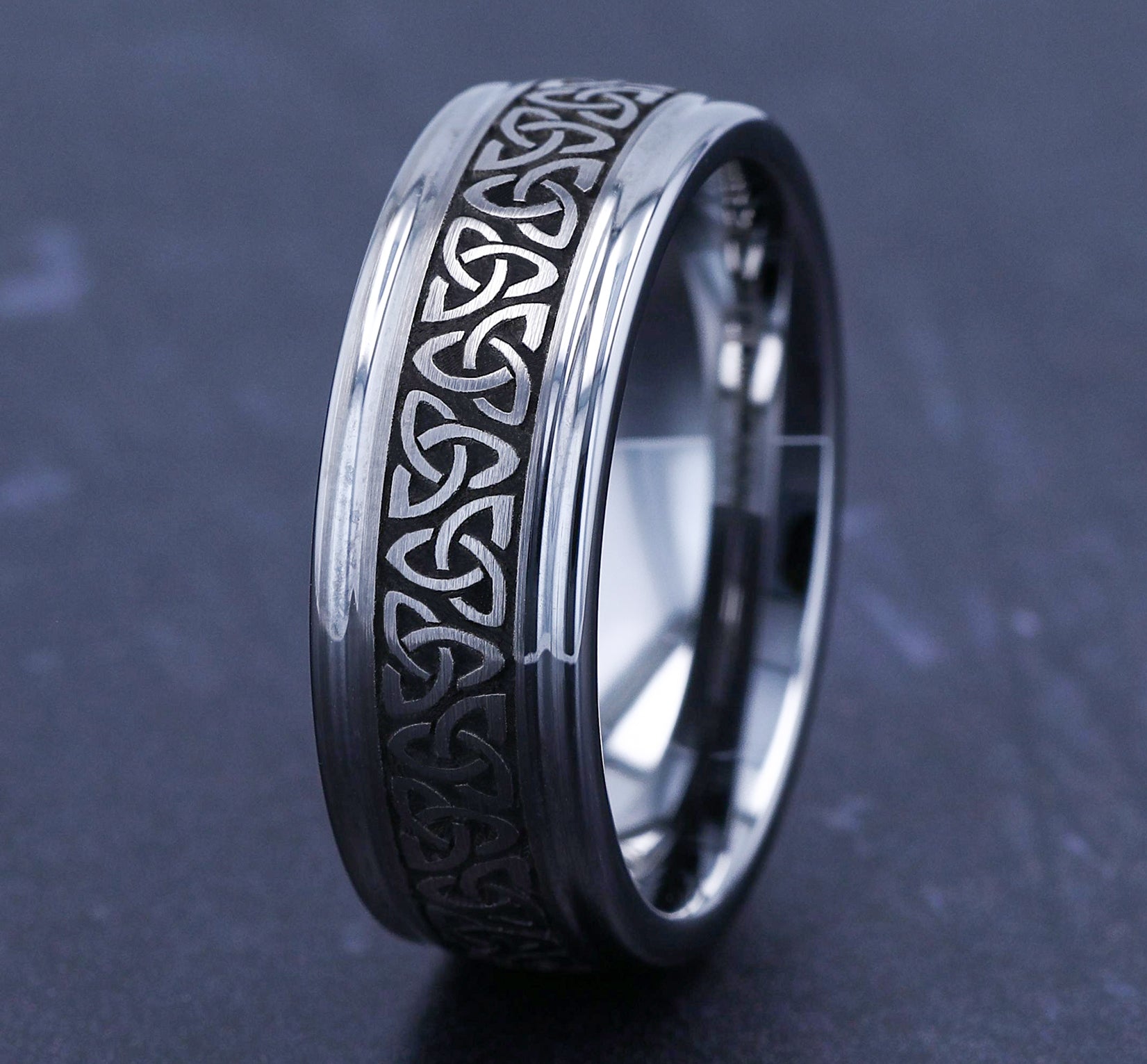 8mm, Comfort fit Tungsten Celtic knot pattern, polished round edges