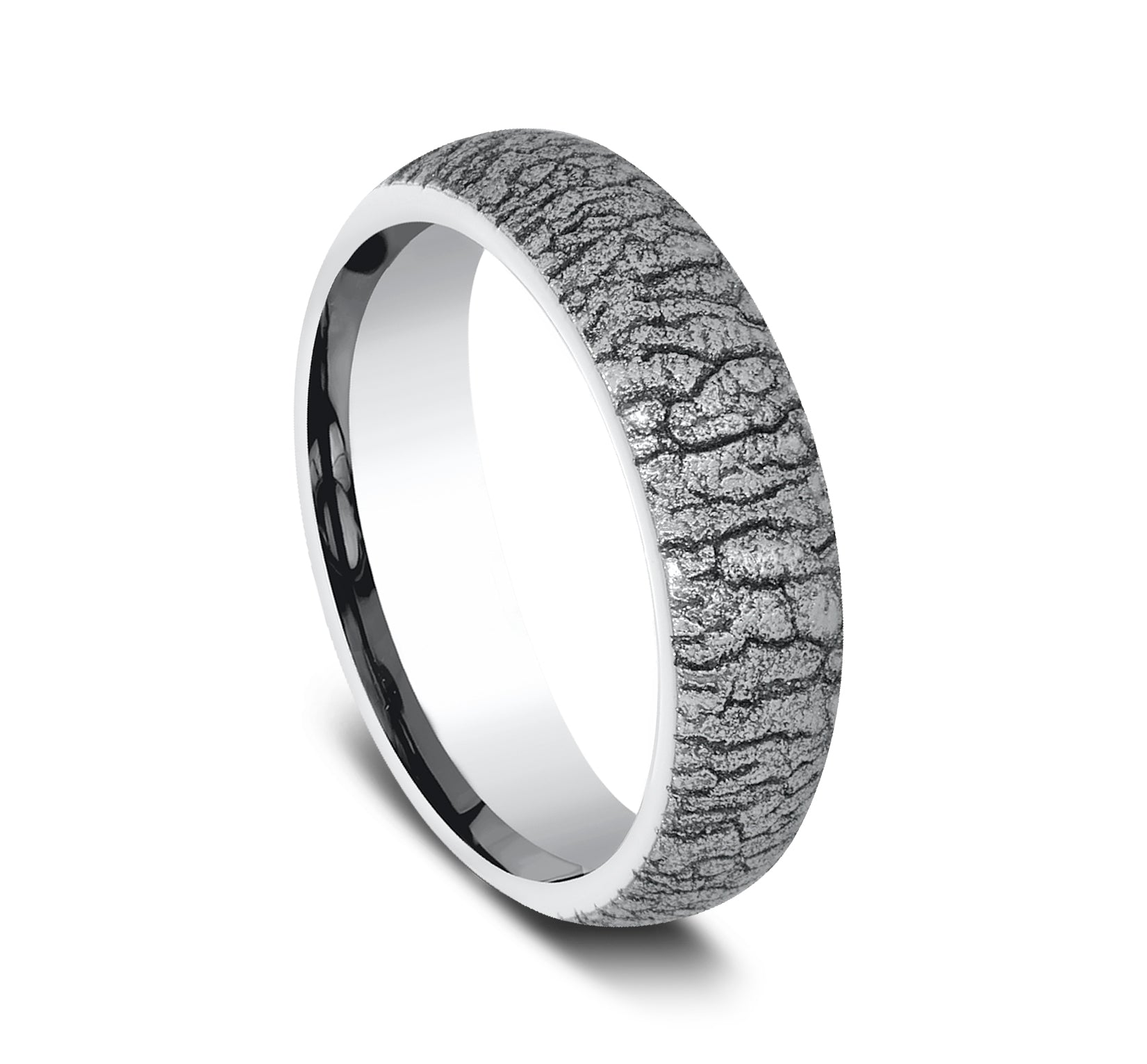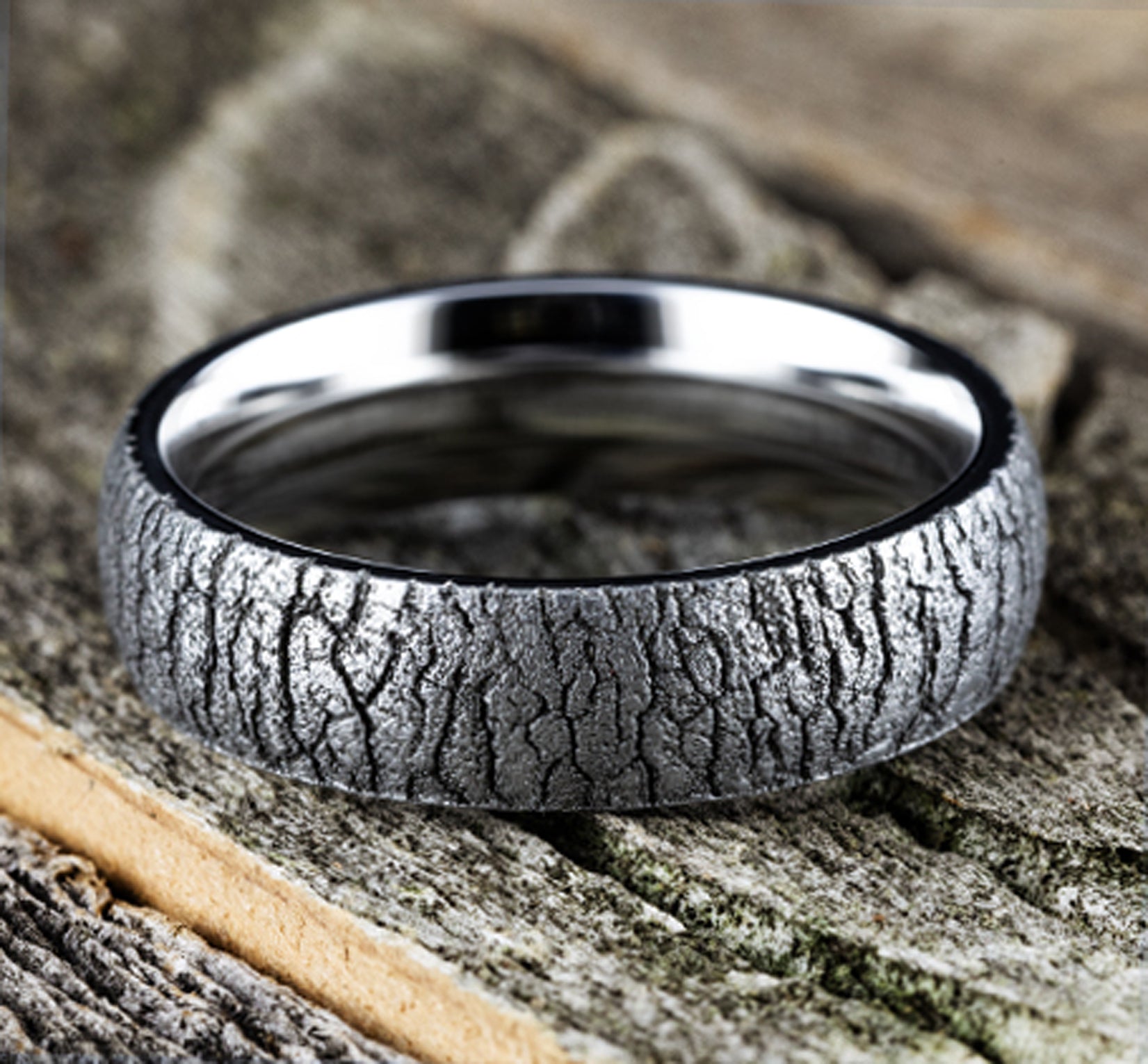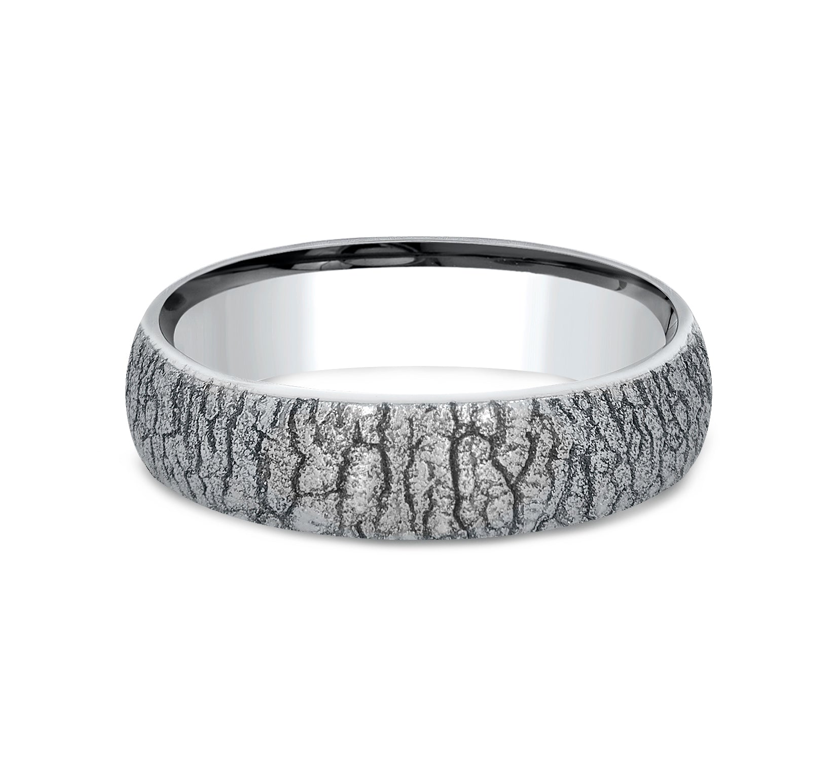 6mm, Comfort fit White Cobalt Tree bark patterned center