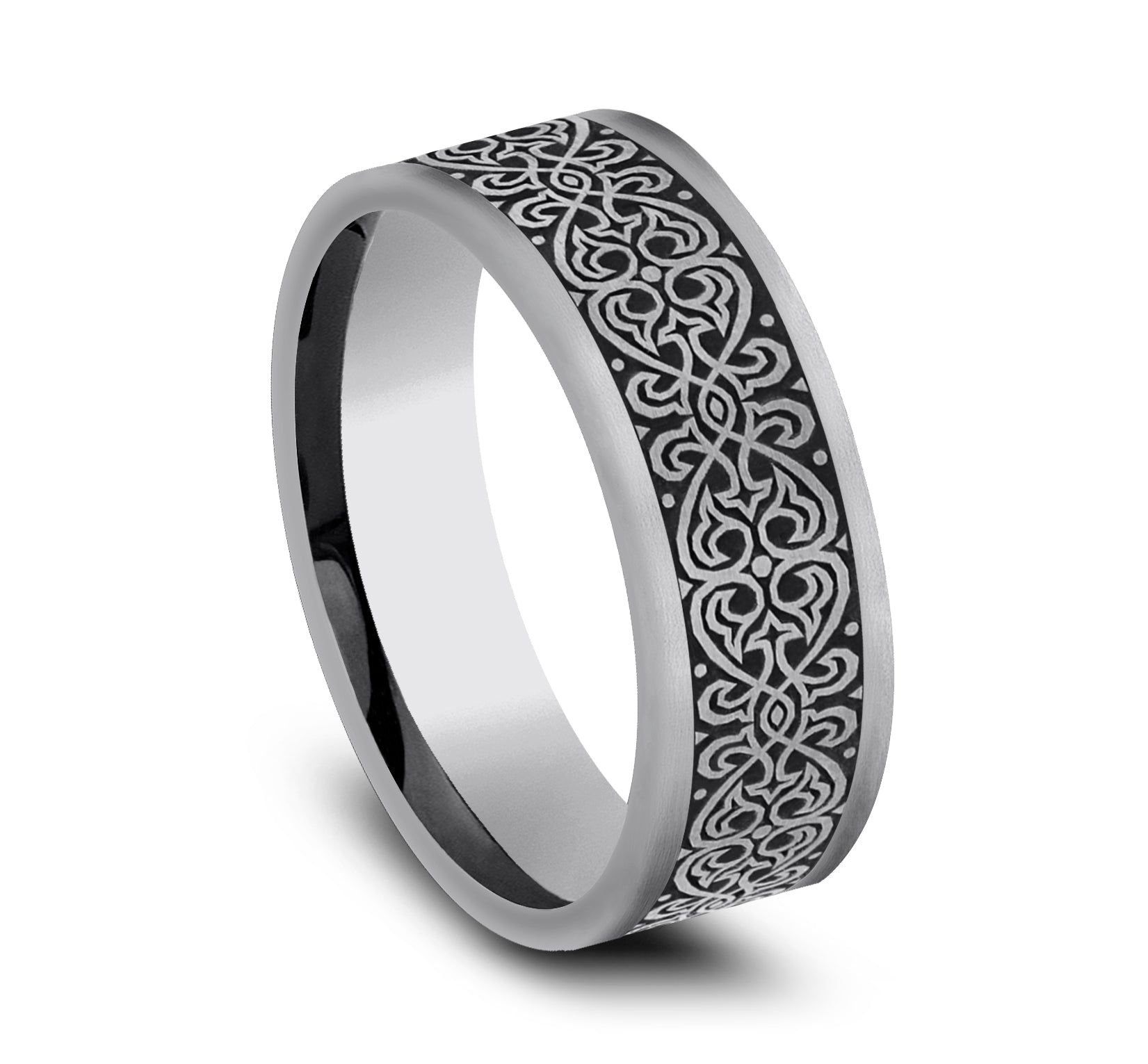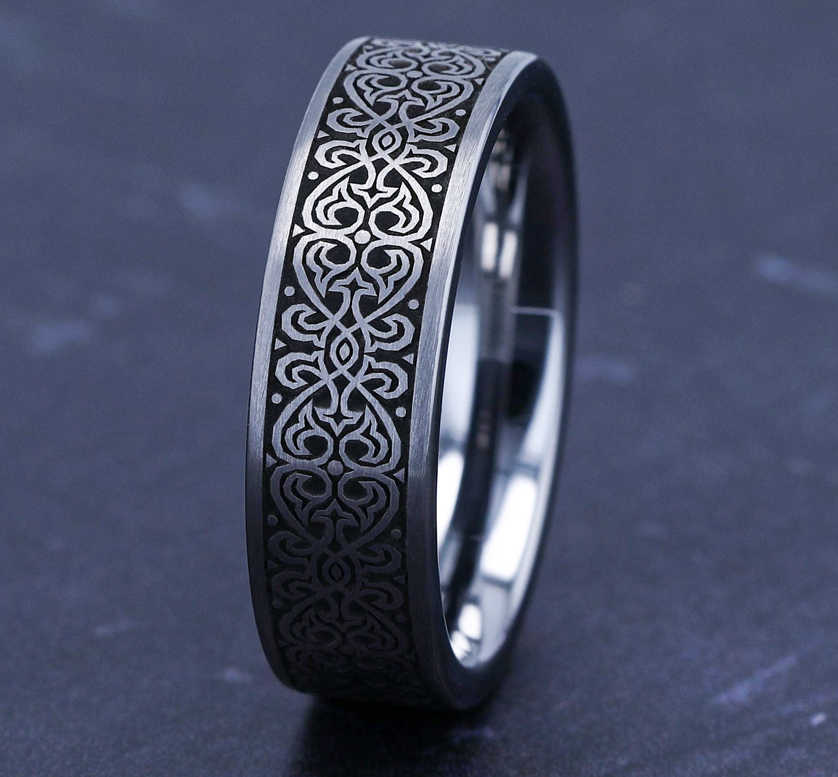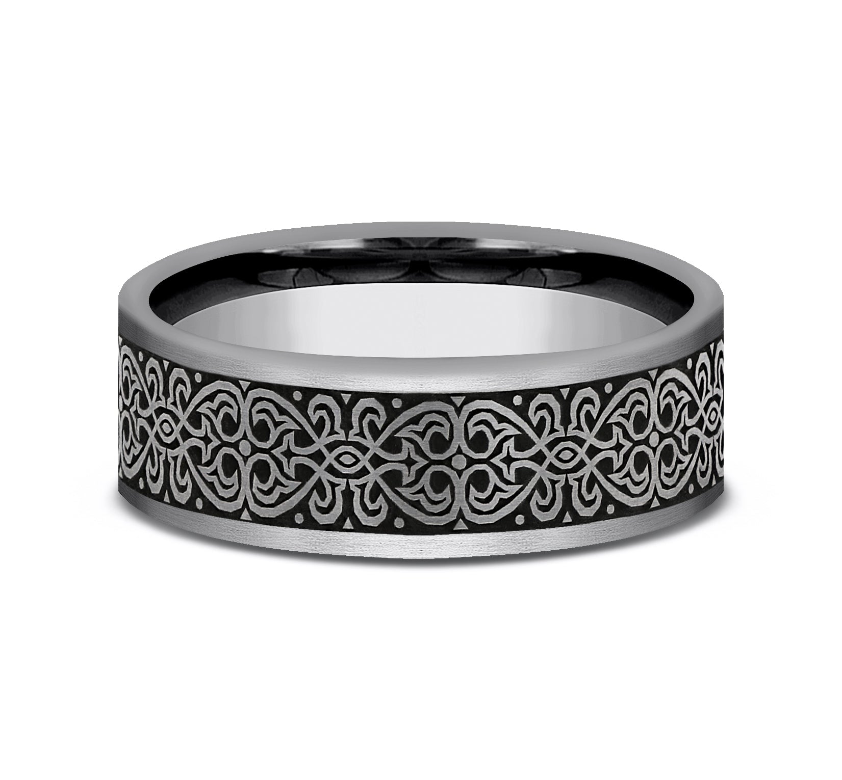 7mm, Comfort fit Tungsten Ottoman Knot pattern