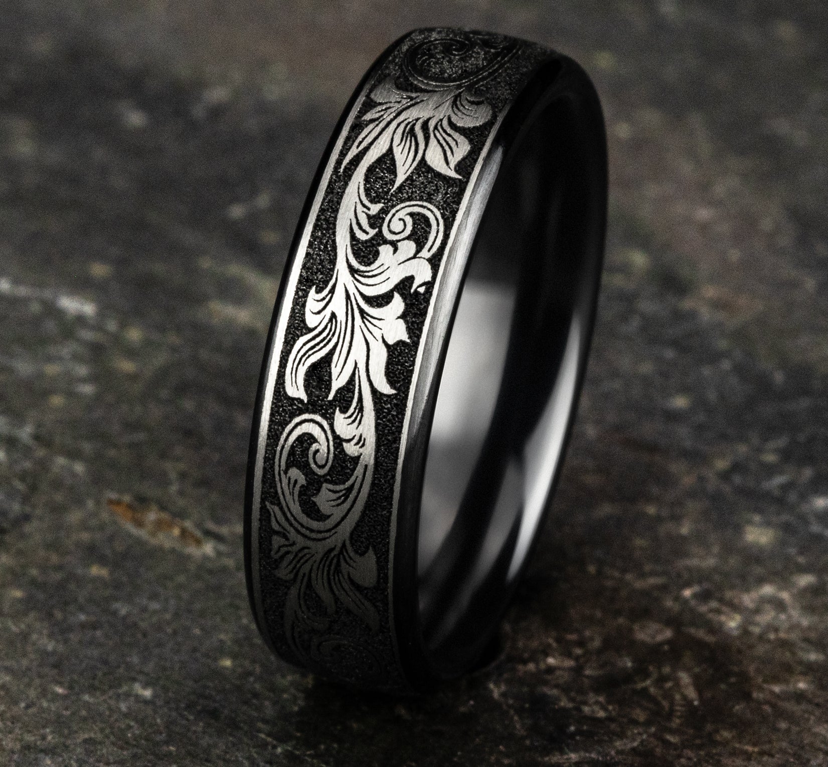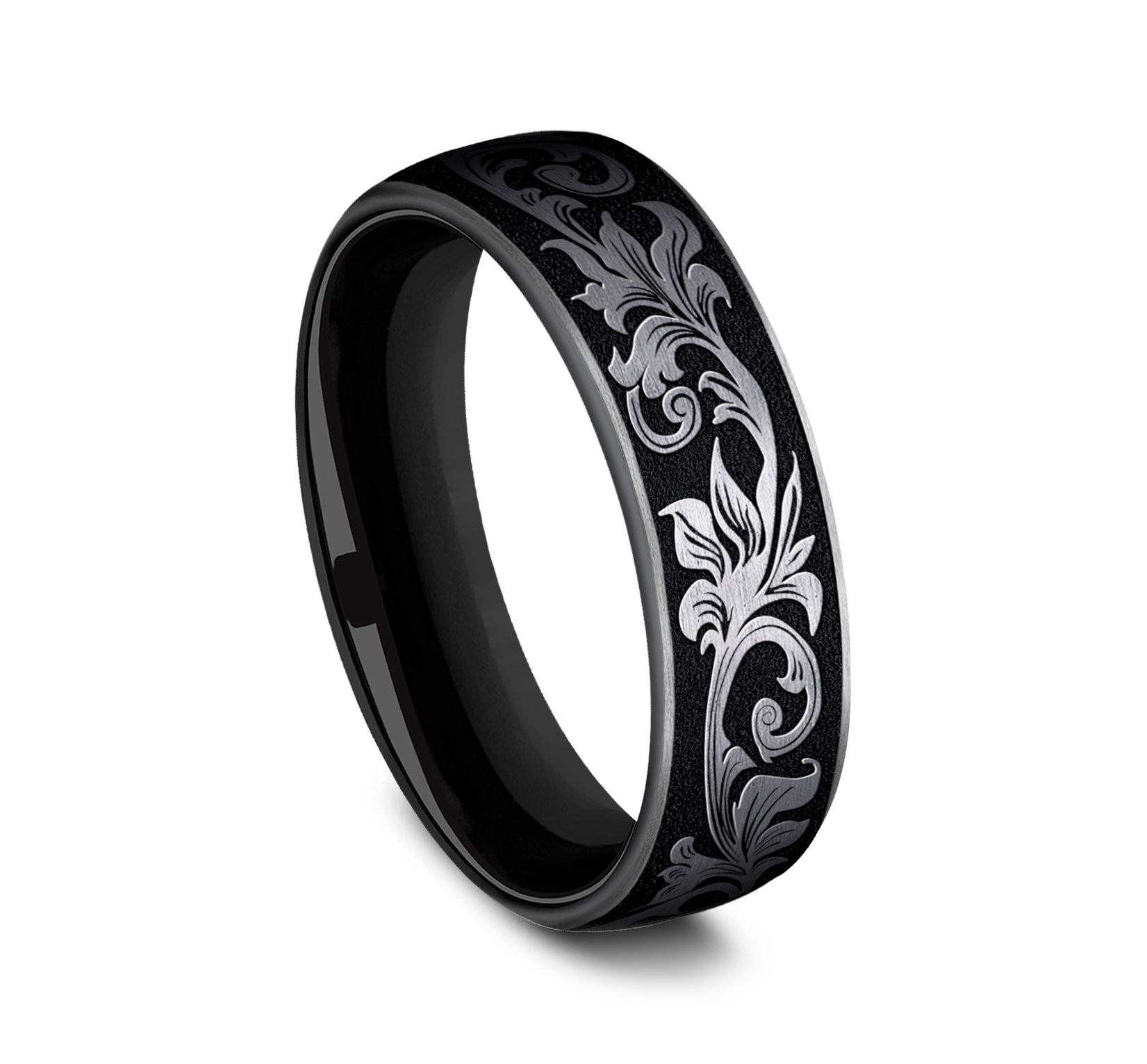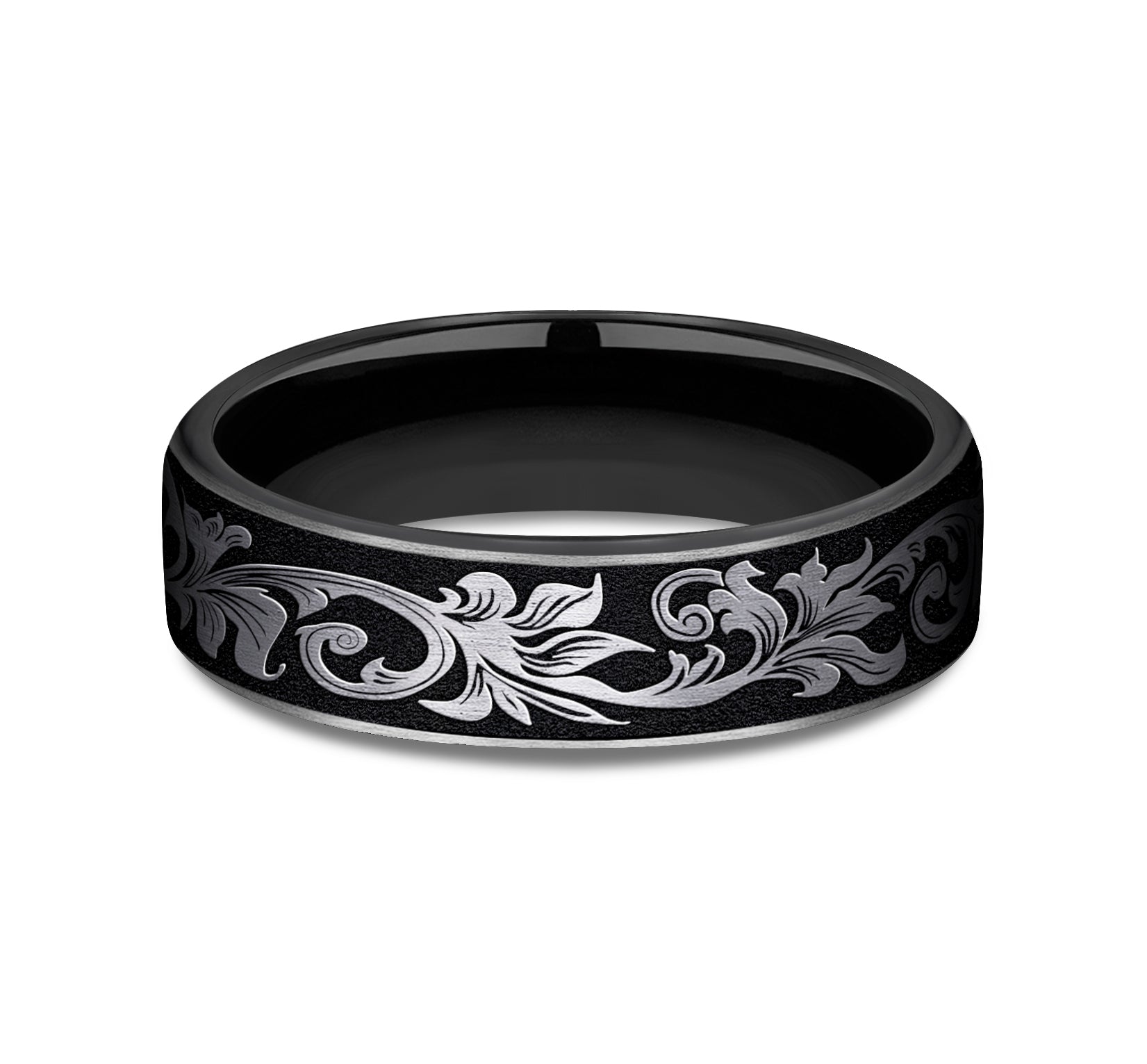 6.5mm, Comfort fit Grey/Black Titanium Vintage script pattern