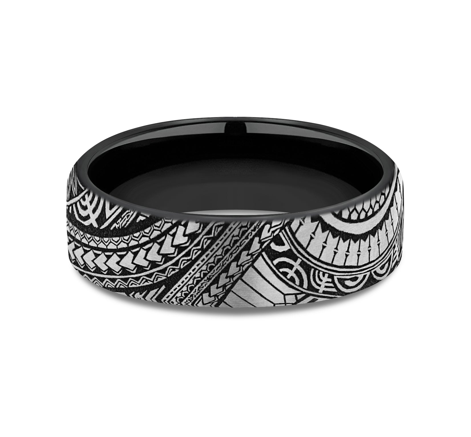 6.5mm, European comfort fit Grey-Black Titanium Polynesian inspired design