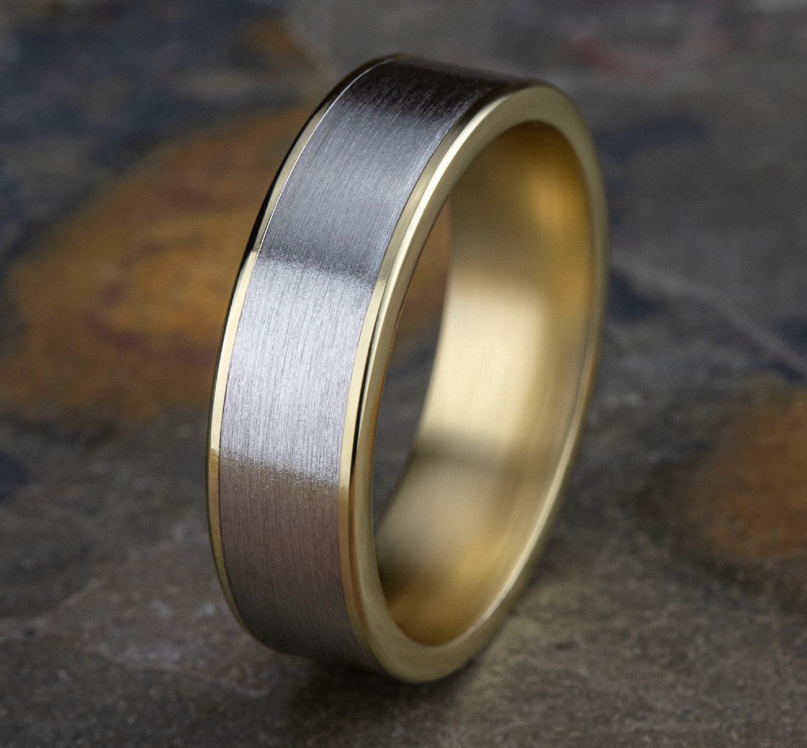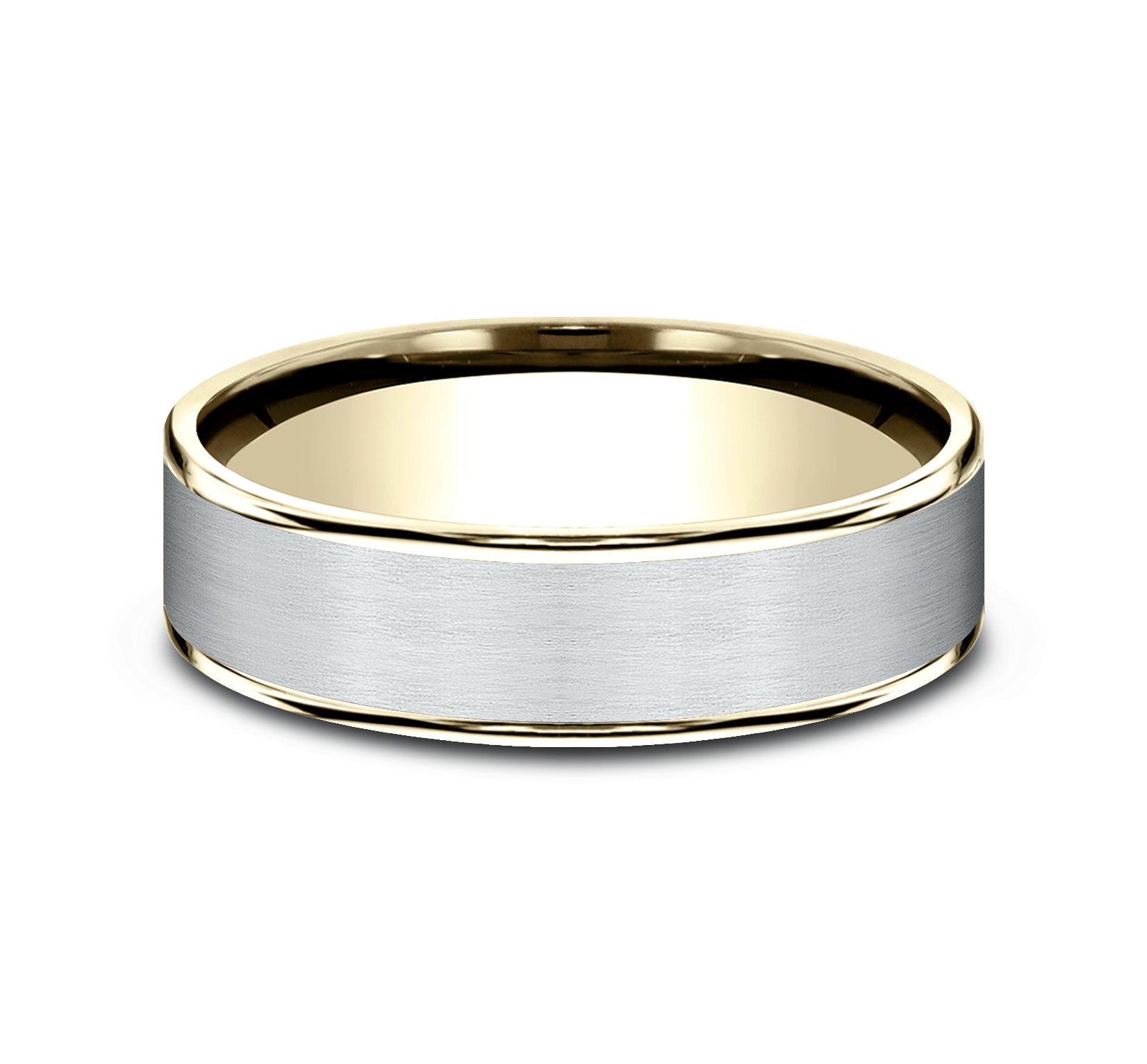 6.5mm, Comfort fit 14K Yellow and White Gold Satin center, thin edges