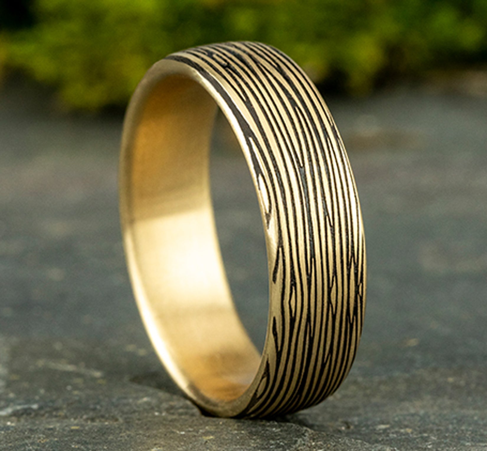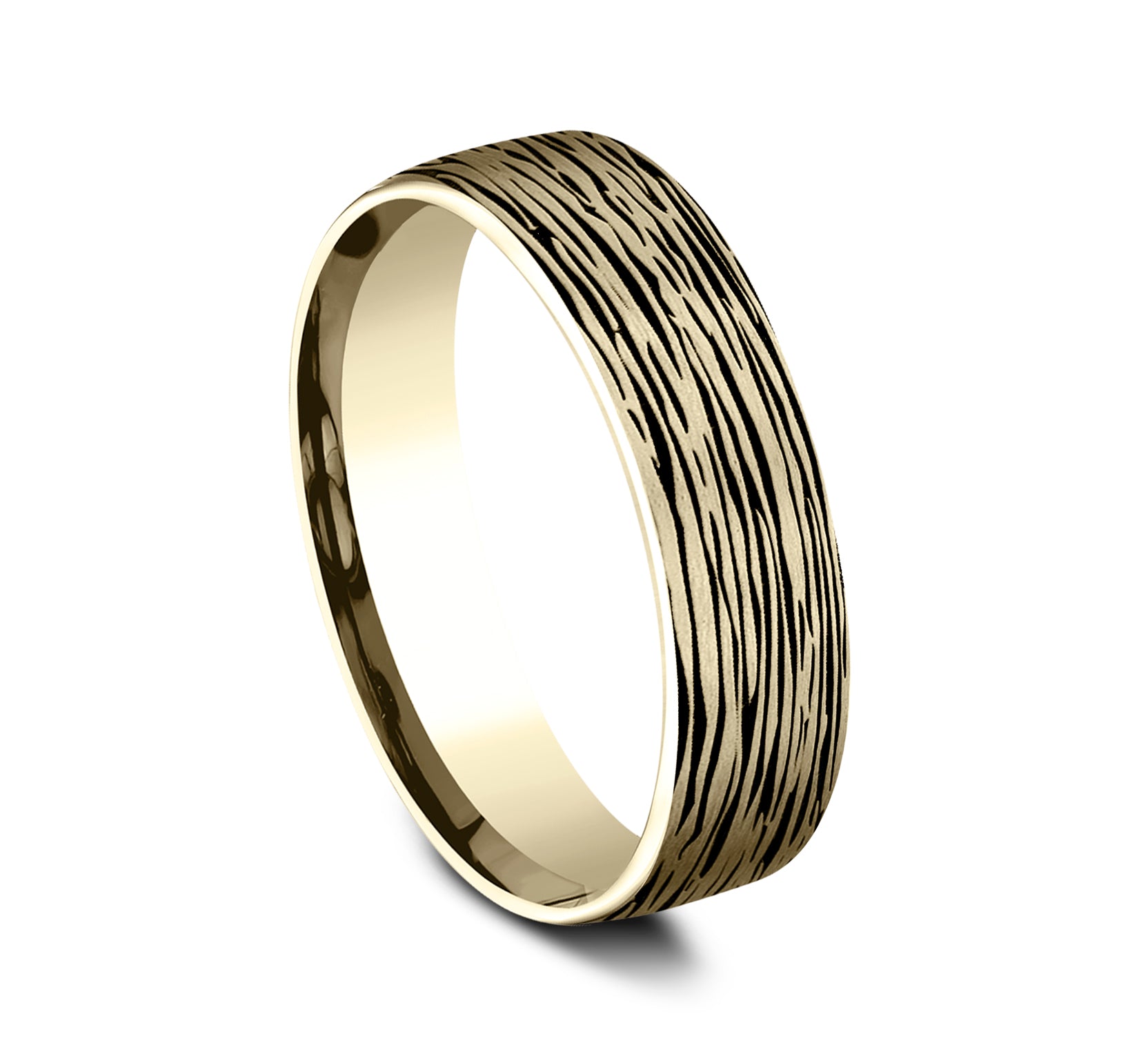 6.5mm, Comfort fit 14K Yellow Gold Horizontal bark pattern