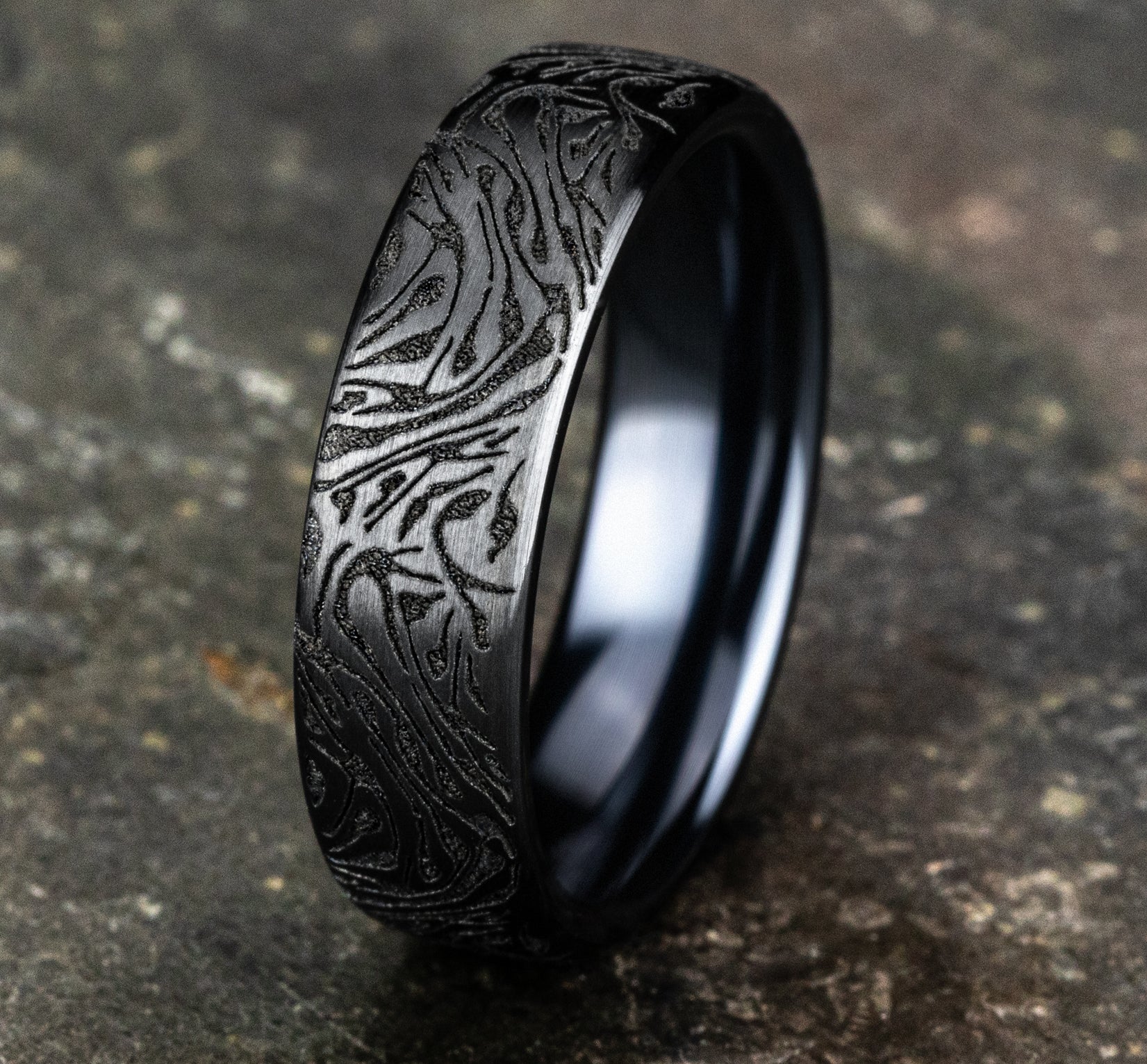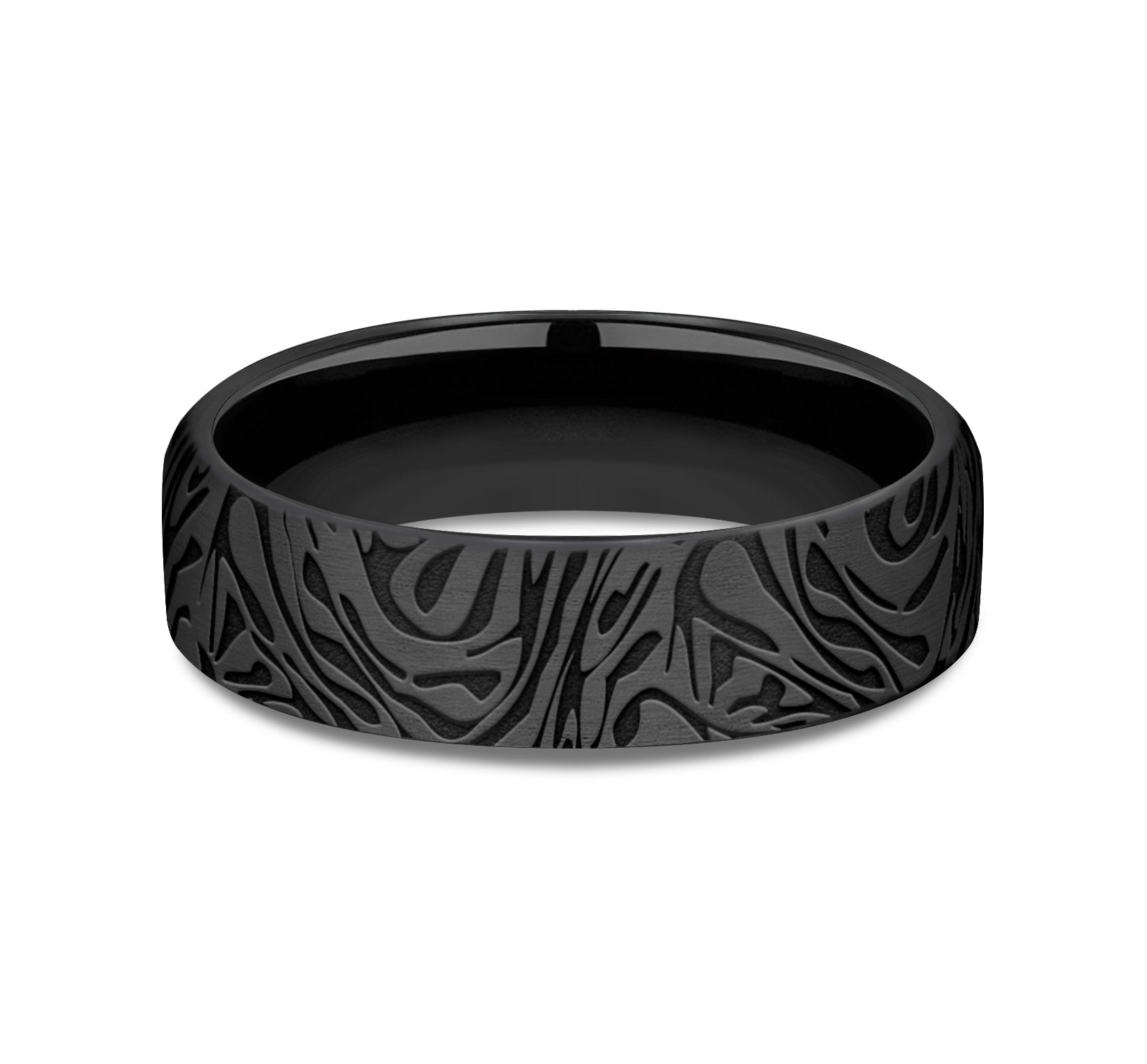 6.5mm, European comfort fit Black Titanium Faux mokume pattern