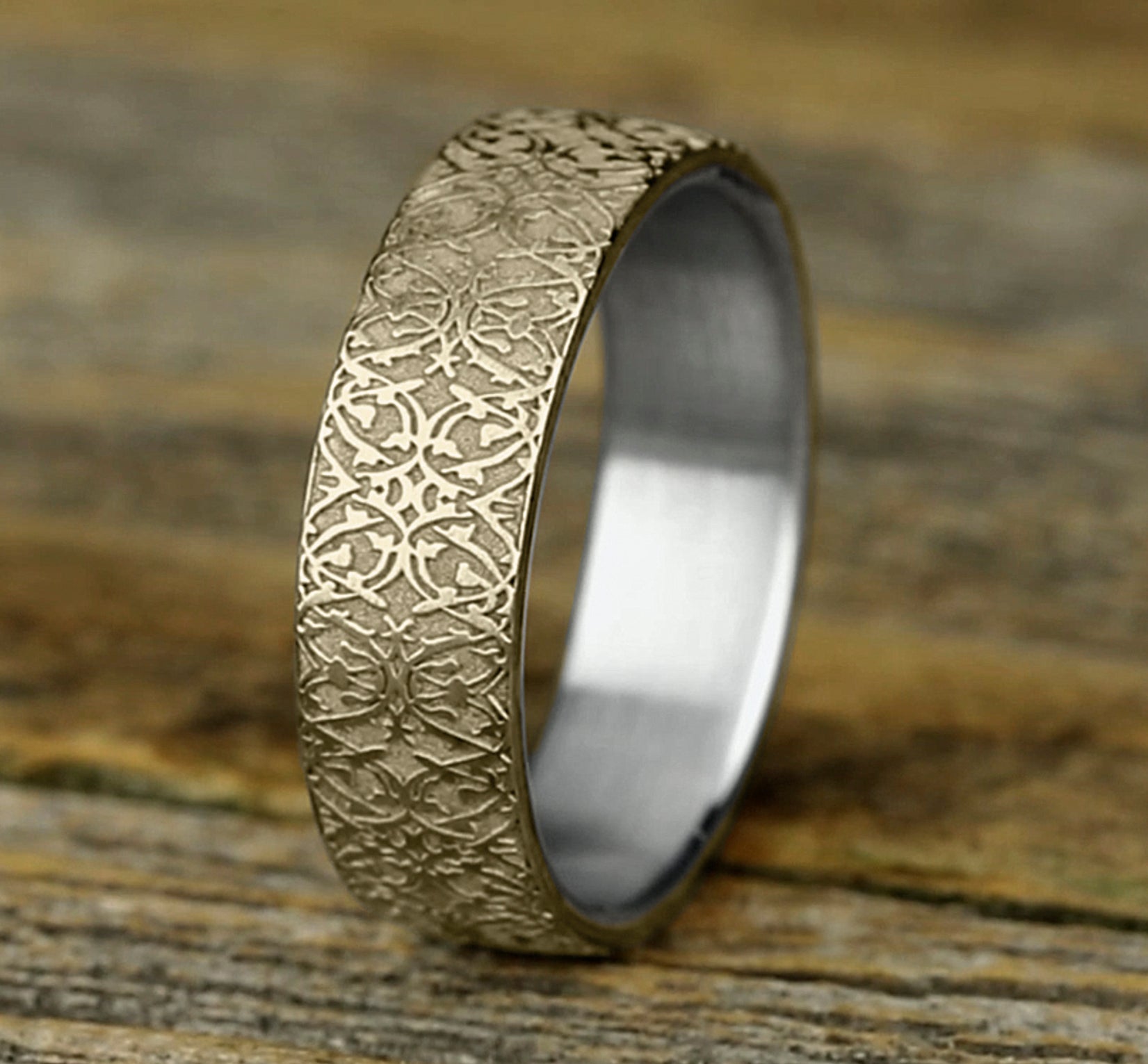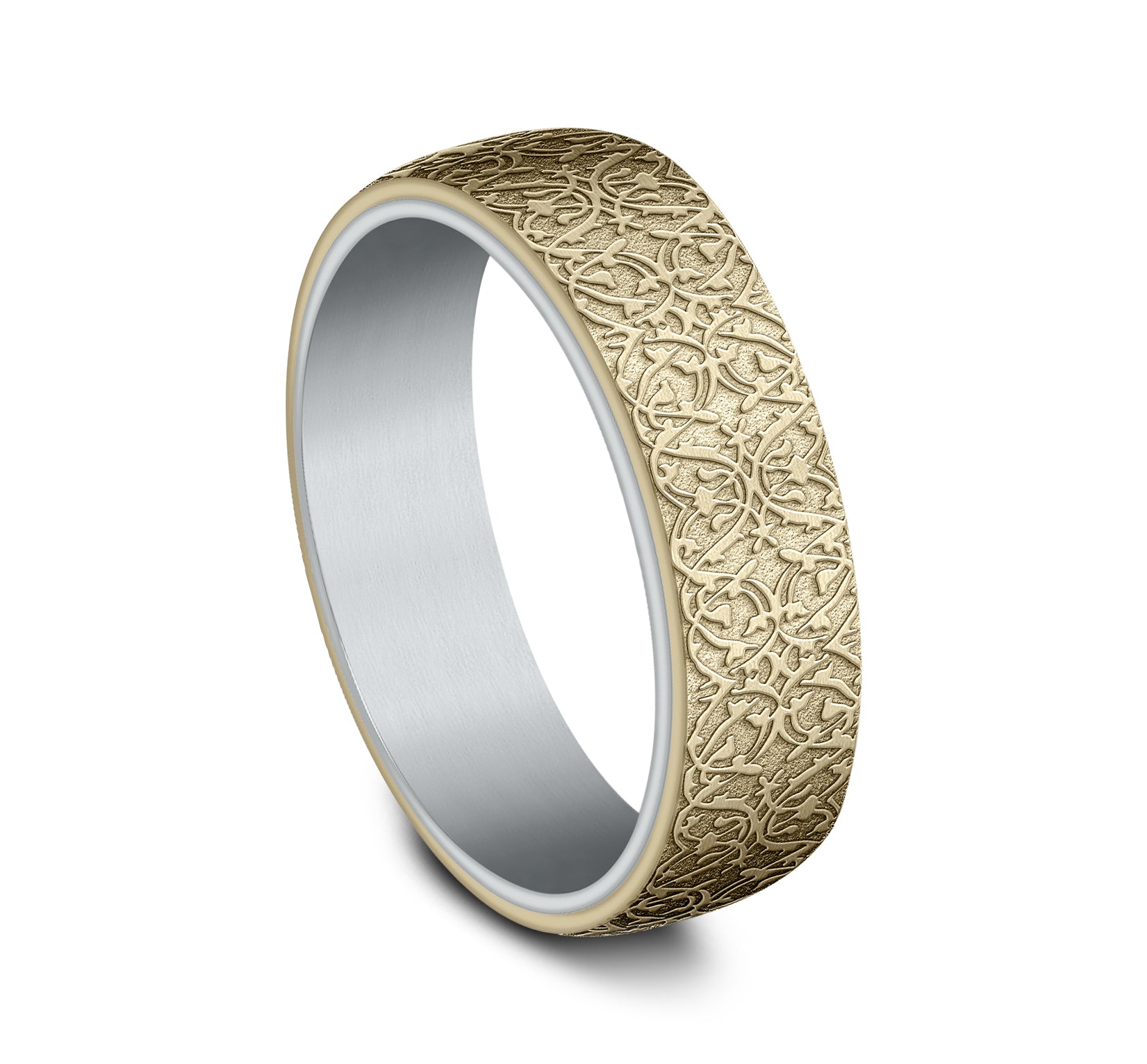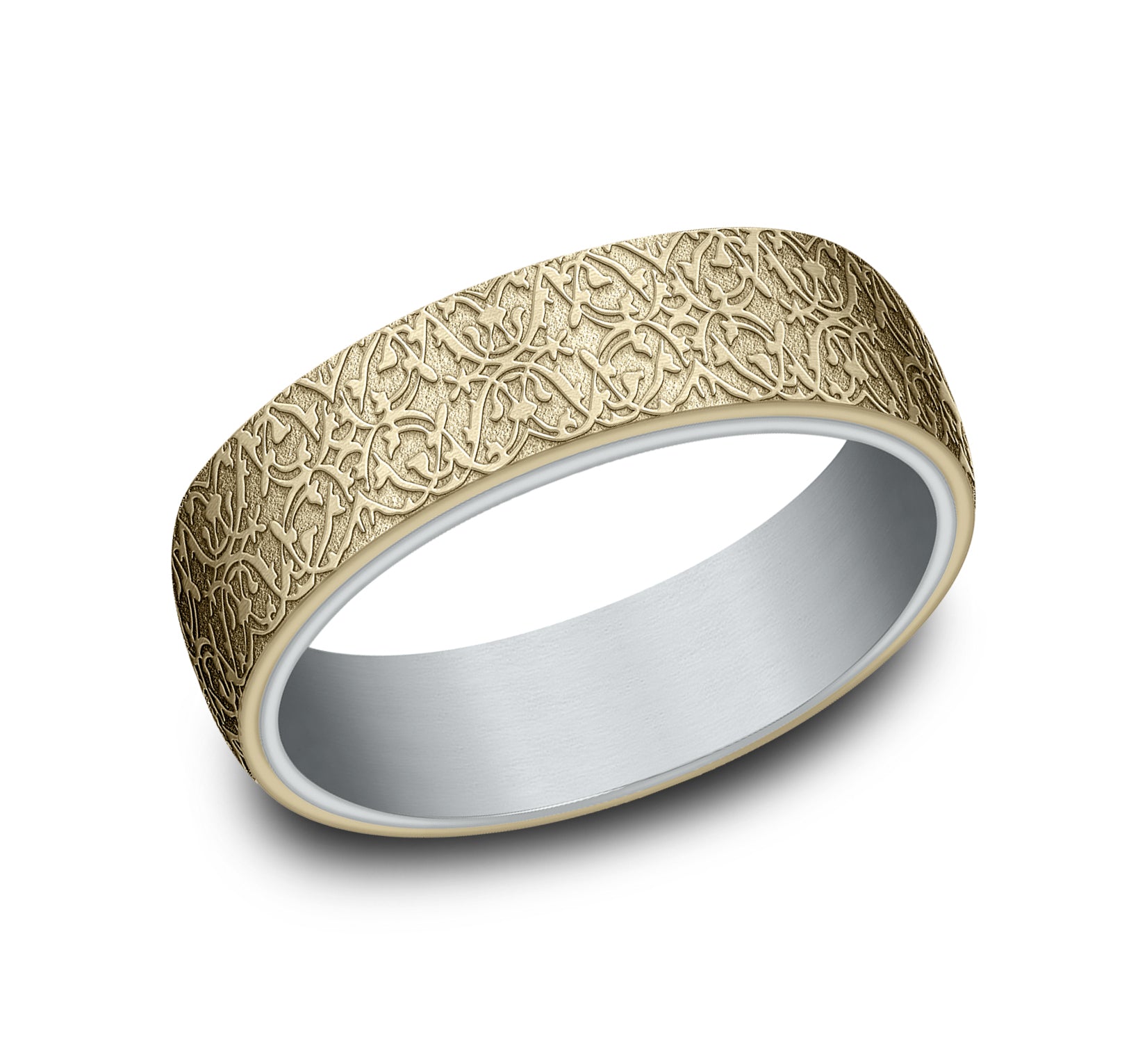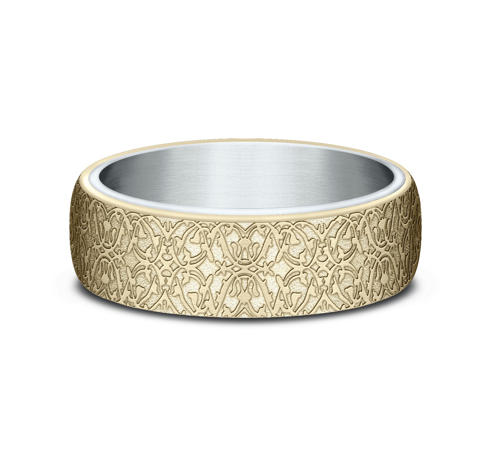 6.5mm, Comfort fit 14K White and Yellow Gold Ottoman pattern
