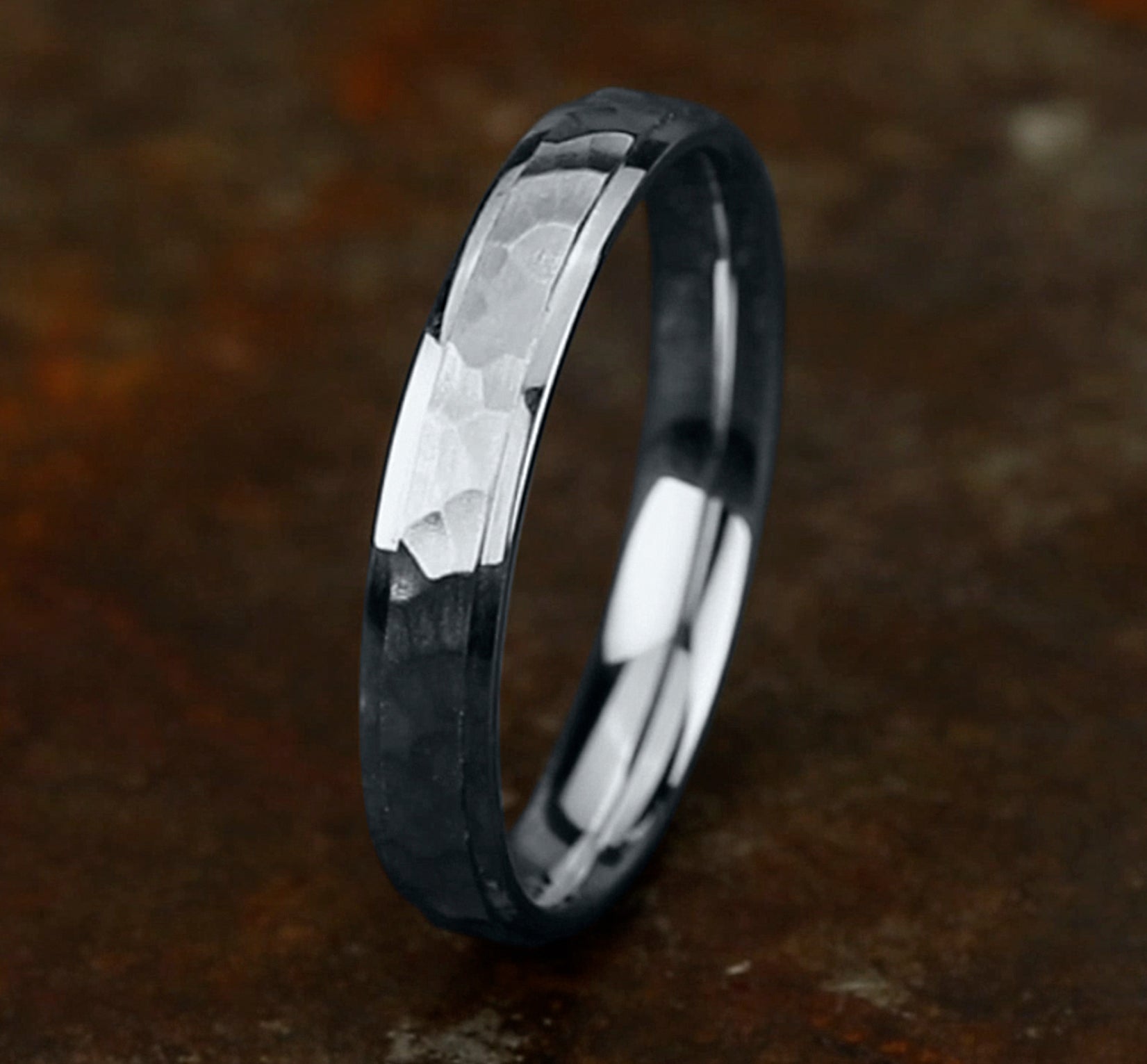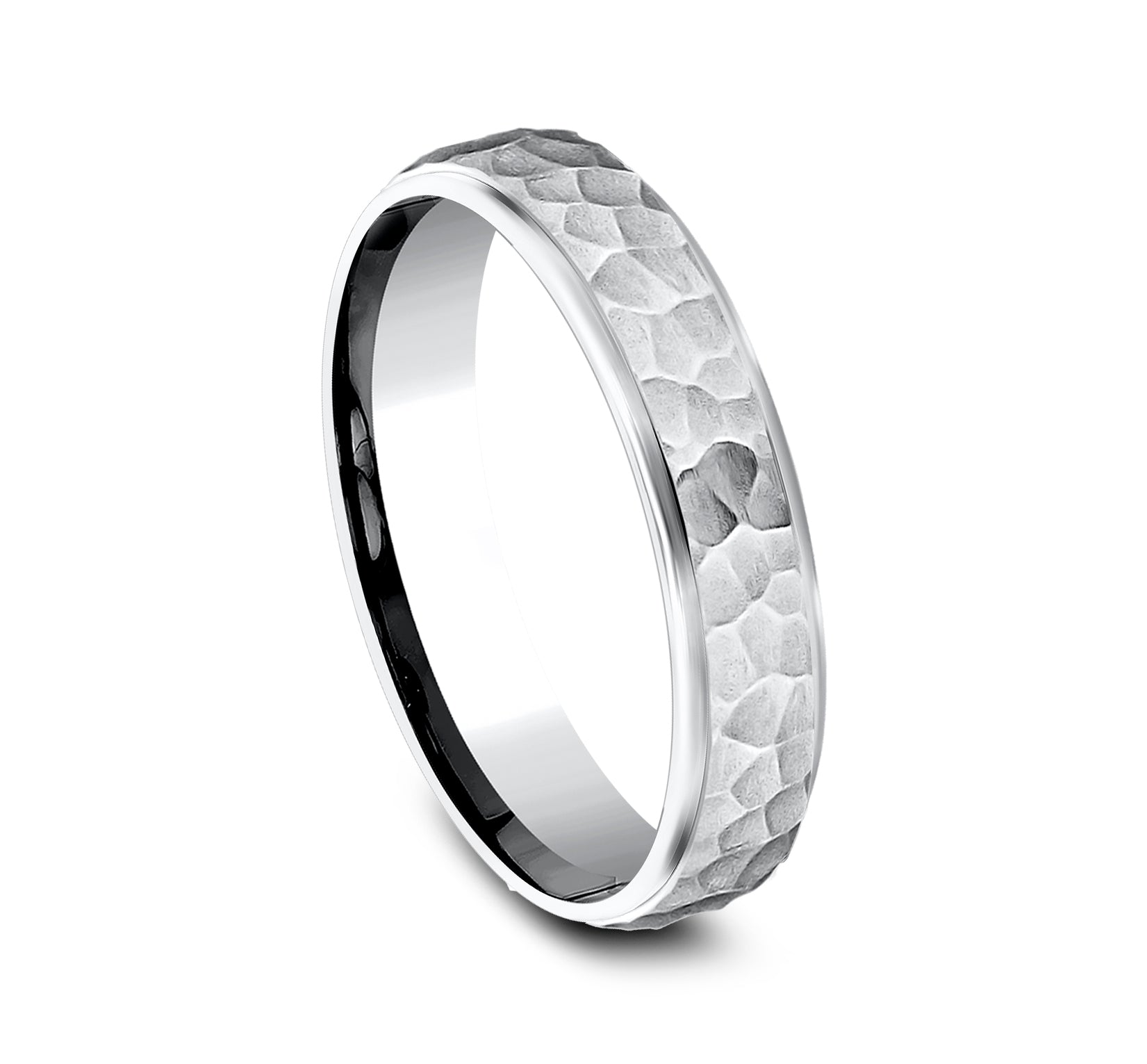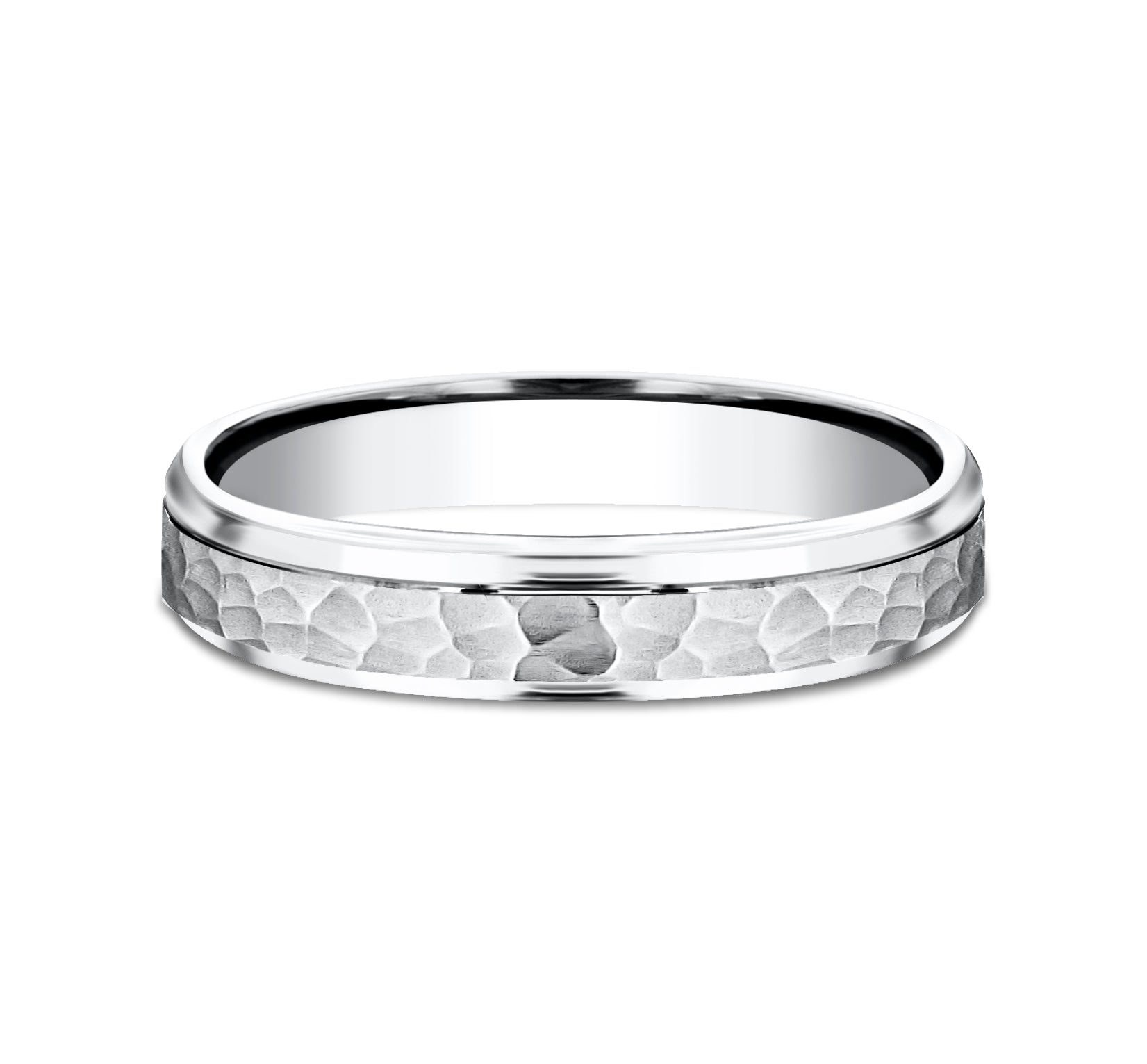 4mm, Comfort fit 14K White Gold Hammered center, polished round edges