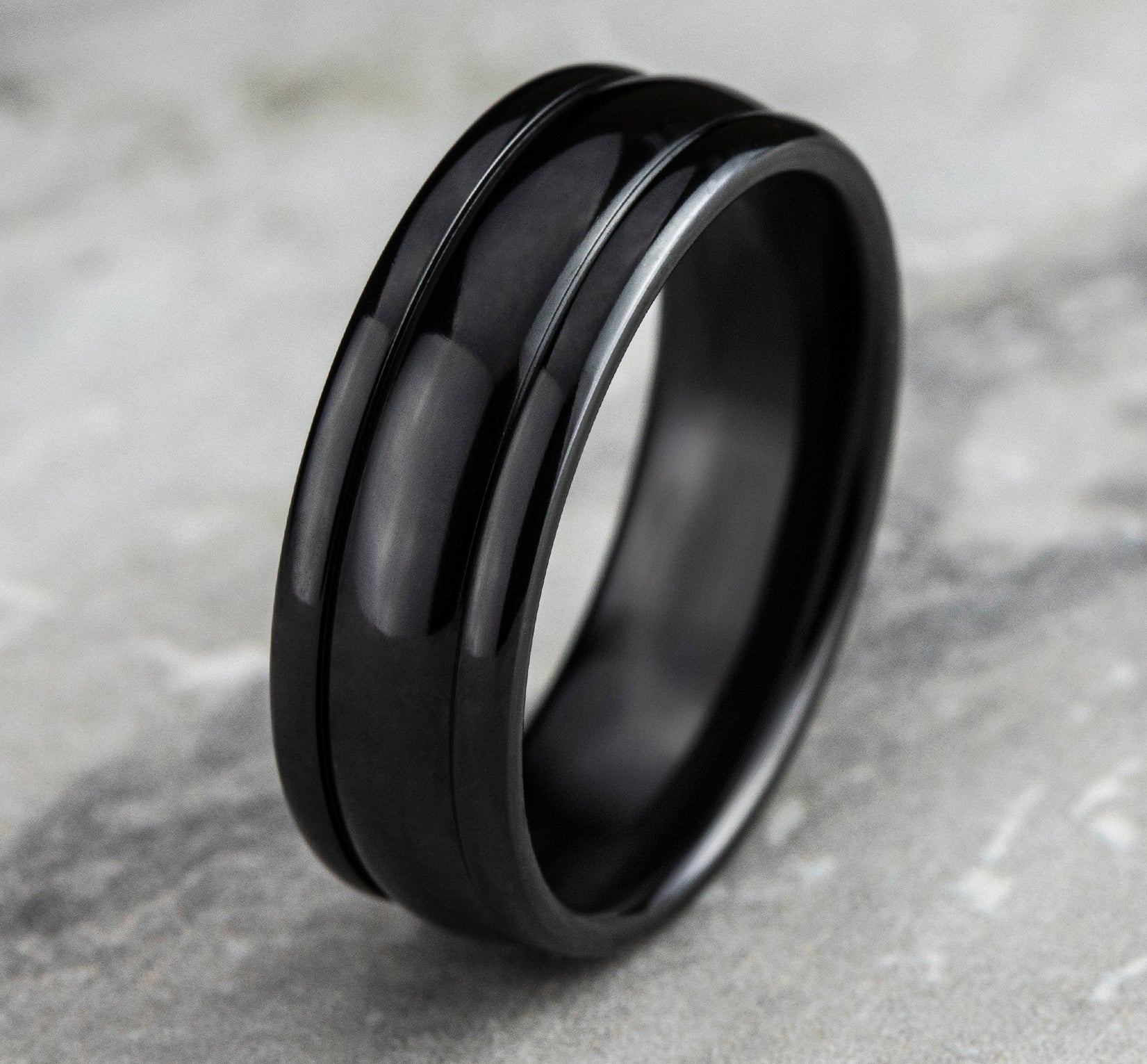 7.5mm, Comfort fit Black Titanium High polished finish, bold round edges