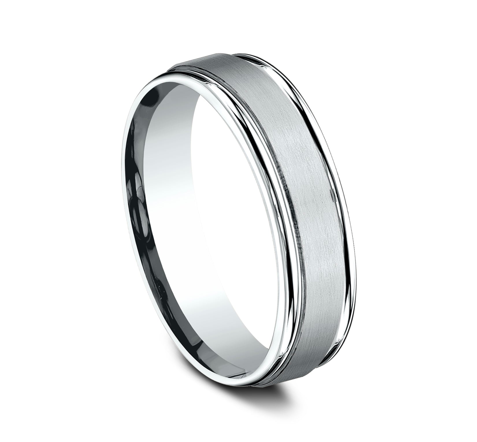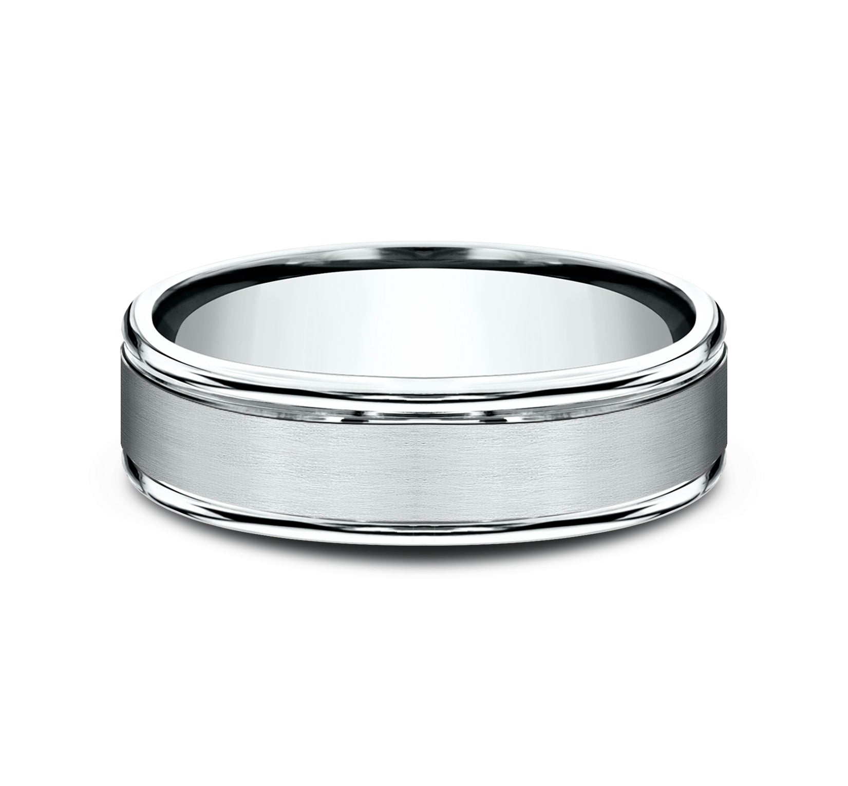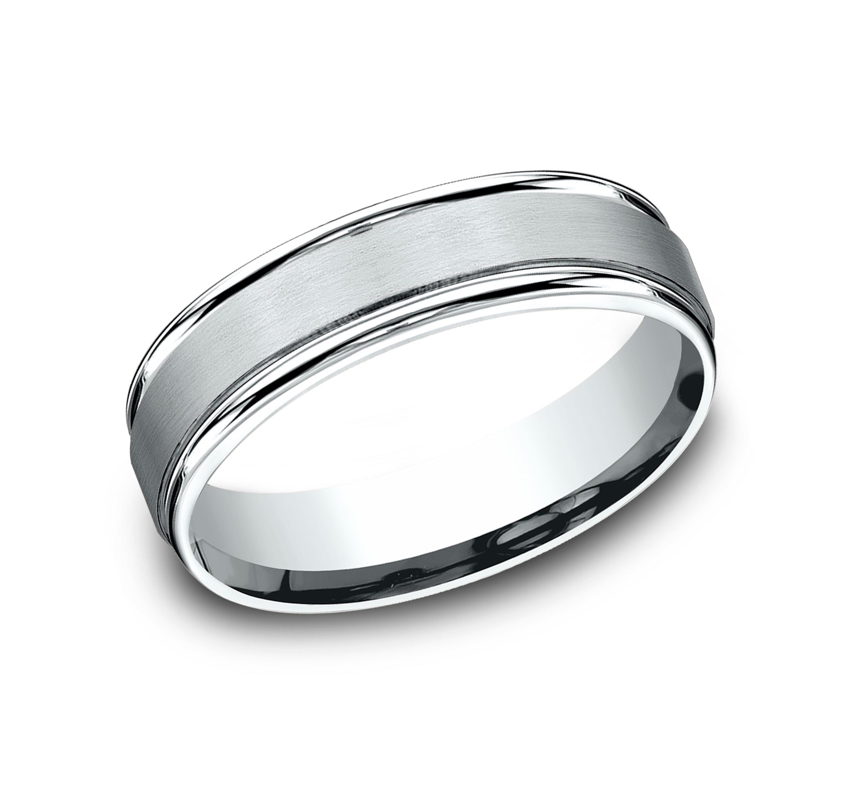 6mm, Comfort fit 14K White Gold Satin center, polished round edges