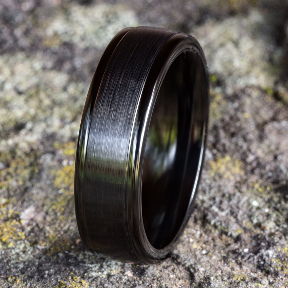 6mm, Comfort fit Black Titanium Satin center, polished round edges