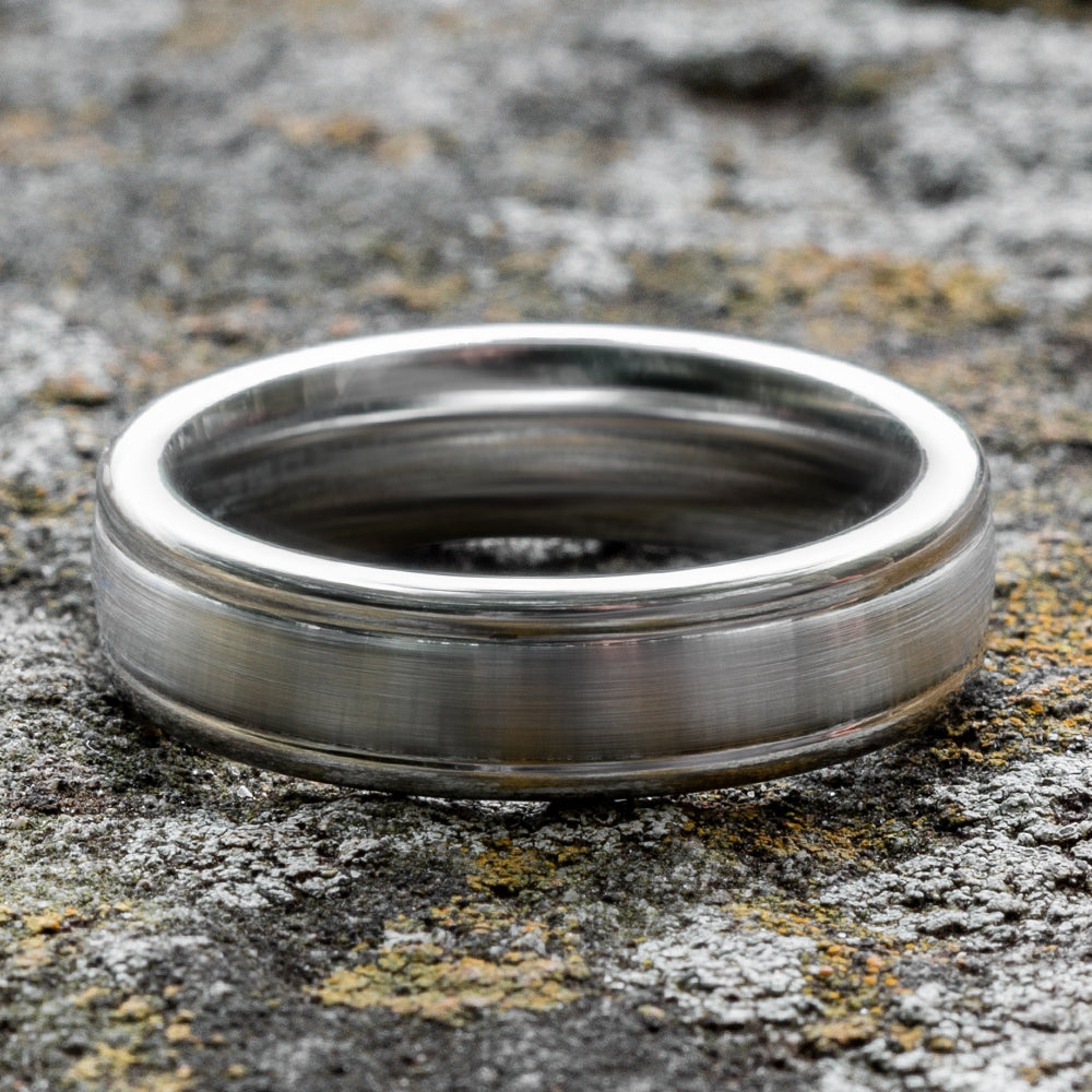 6mm, Comfort fit White Cobalt Satin center, polished round edges